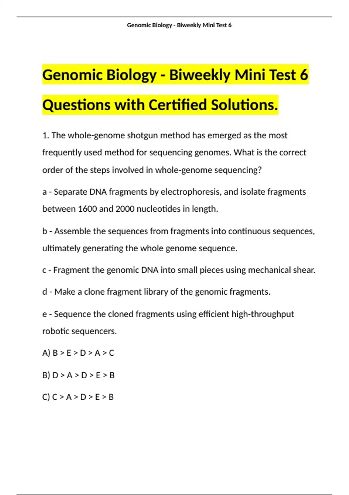 Genomic Biology - Biweekly Mini Test 6 Questions with Certified Solutions.