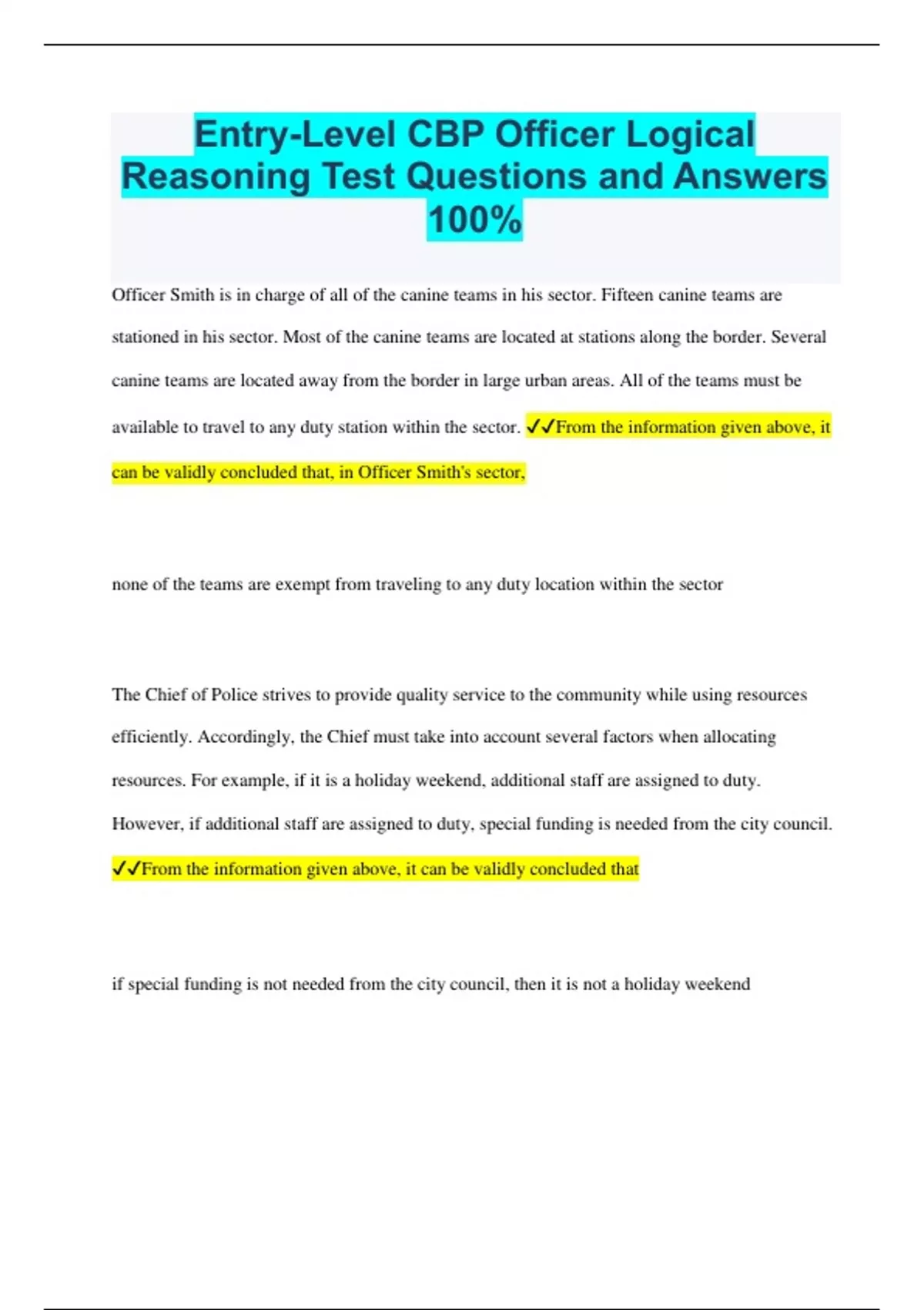 Entry-Level CBP Officer Logical Reasoning Test Questions and Answers 100%