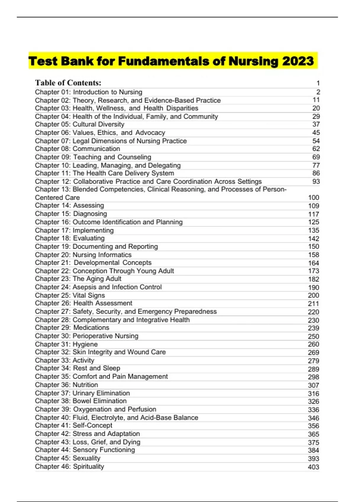Fundamentals of Nursing Test bank All Topics 2023/2024