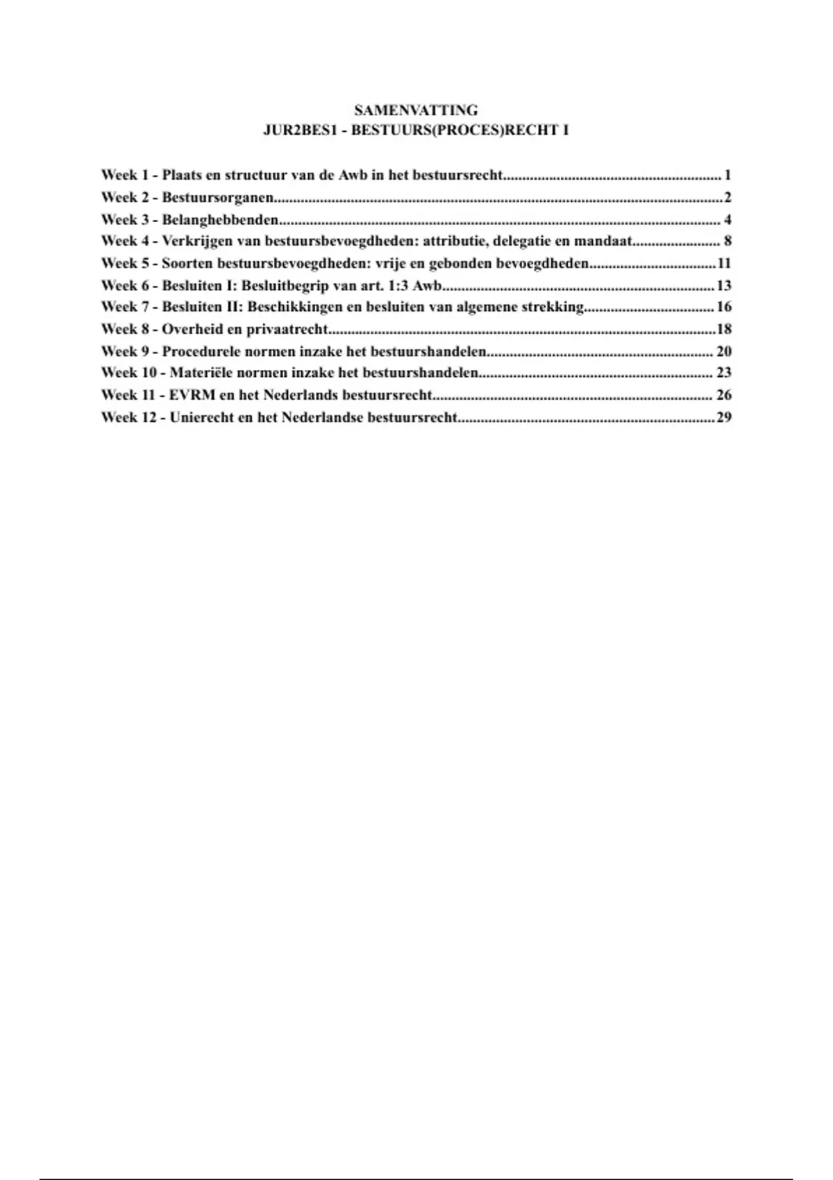 Week 1 - Plaats en structuur van de Awb in het bestuursrecht......................................................... 1