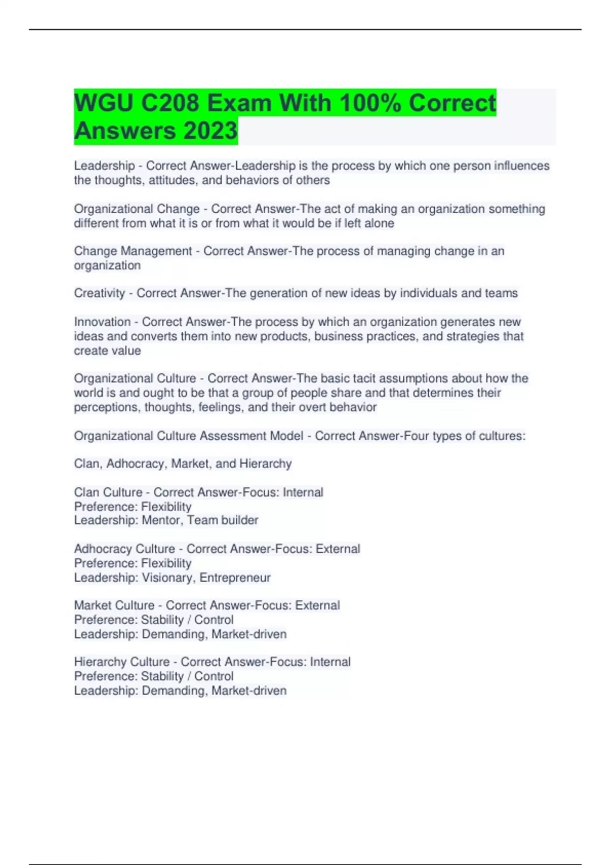 wgu c208 exam with 100 correct answers