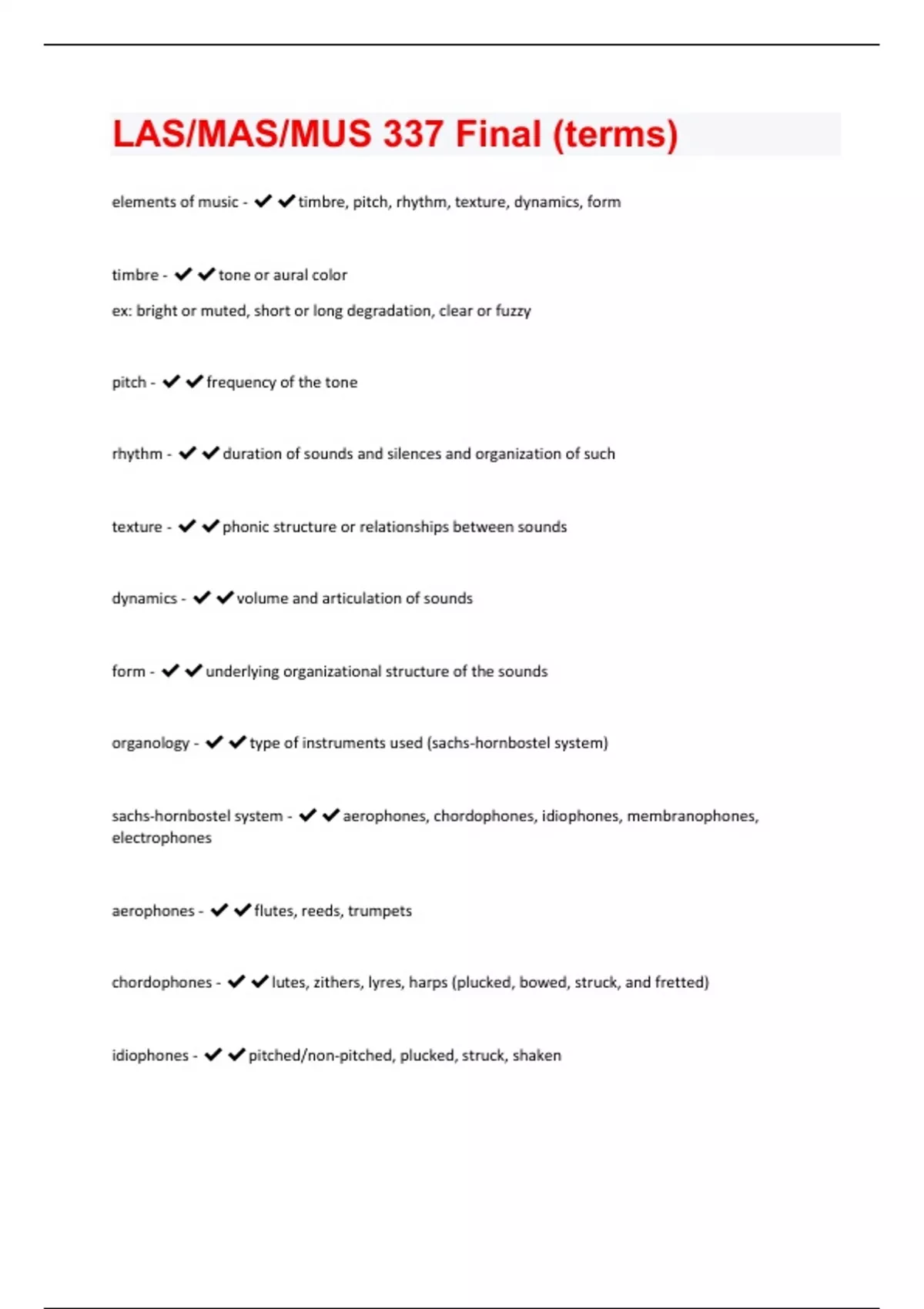 LAS/MAS/MUS 337 Final Exam Questions and Answers(A+ Solution guide)