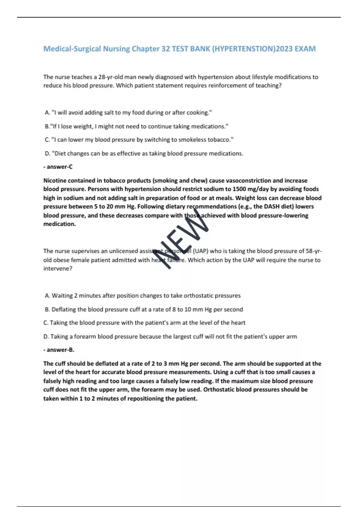 Medical-Surgical Nursing Chapter 32 TEST BANK (HYPERTENSTION)2023 EXAM Medical-Surgical Nursing Chapter 32 TEST BANK (HYPERTENSTION)2023 EXAM