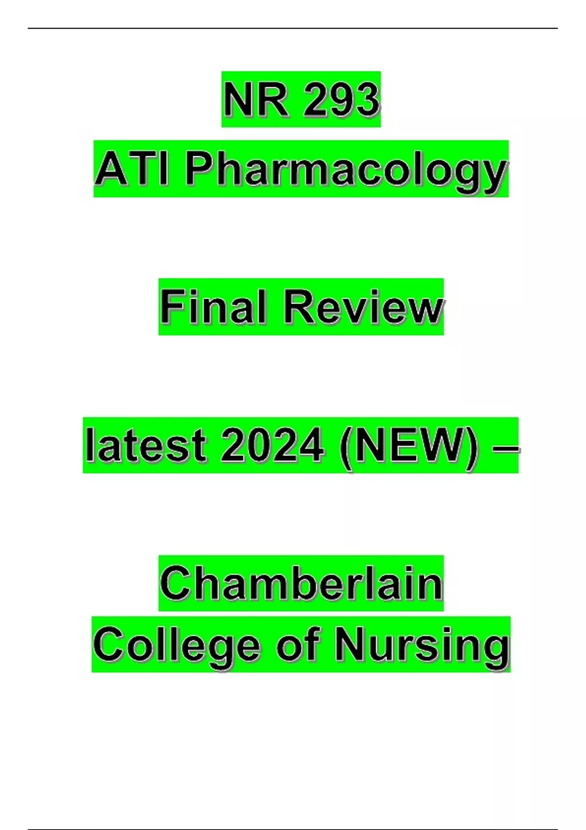 NR 293 ATI Pharmacology Final Review latest – Chamberlain College of Nursing