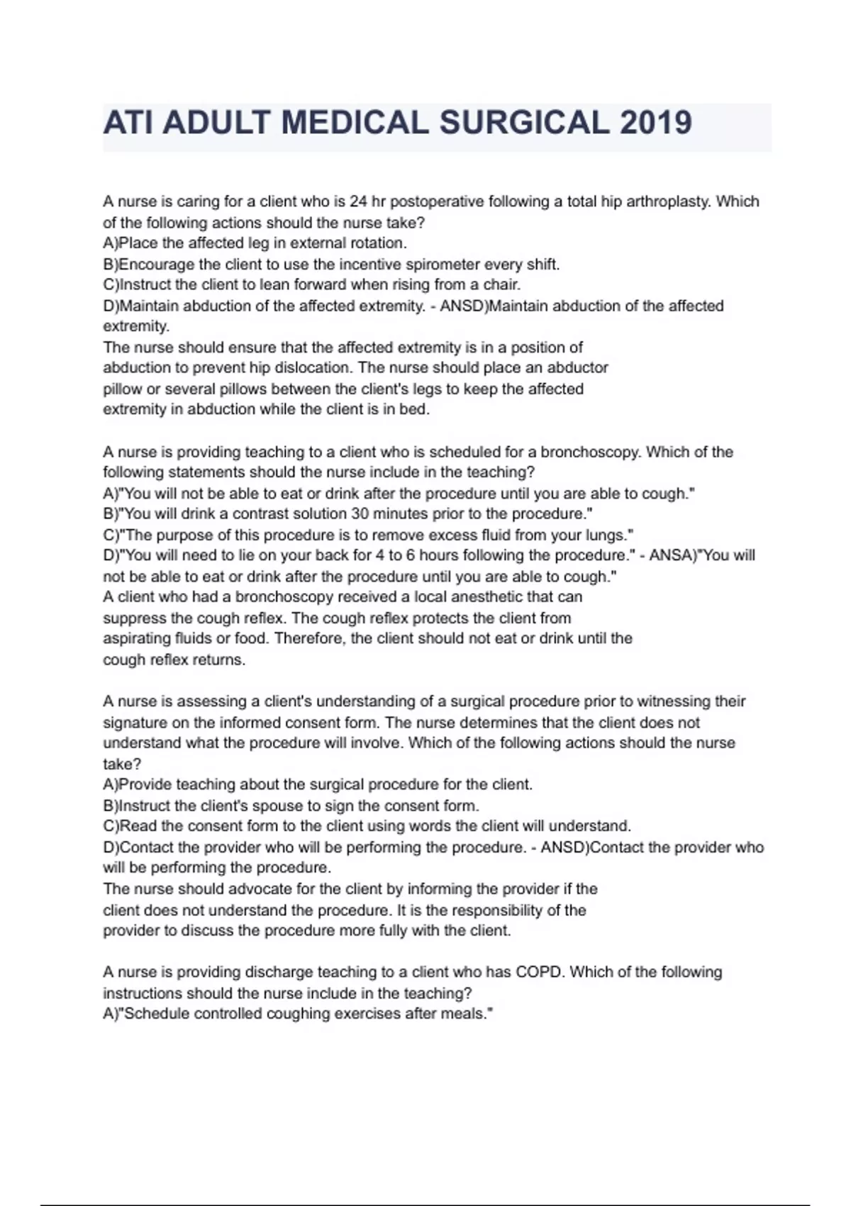 D)"You will need to lie on your back for 4 to 6 hours following the procedure." - ANSA)"You will