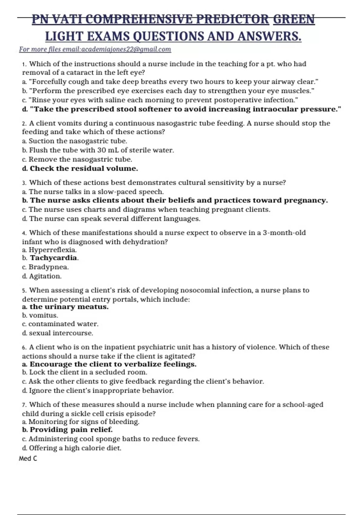 PN VATI COMPREHENSIVE PREDICTOR GREEN LIGHT EXAMS QUESTIONS AND ANSWERS.