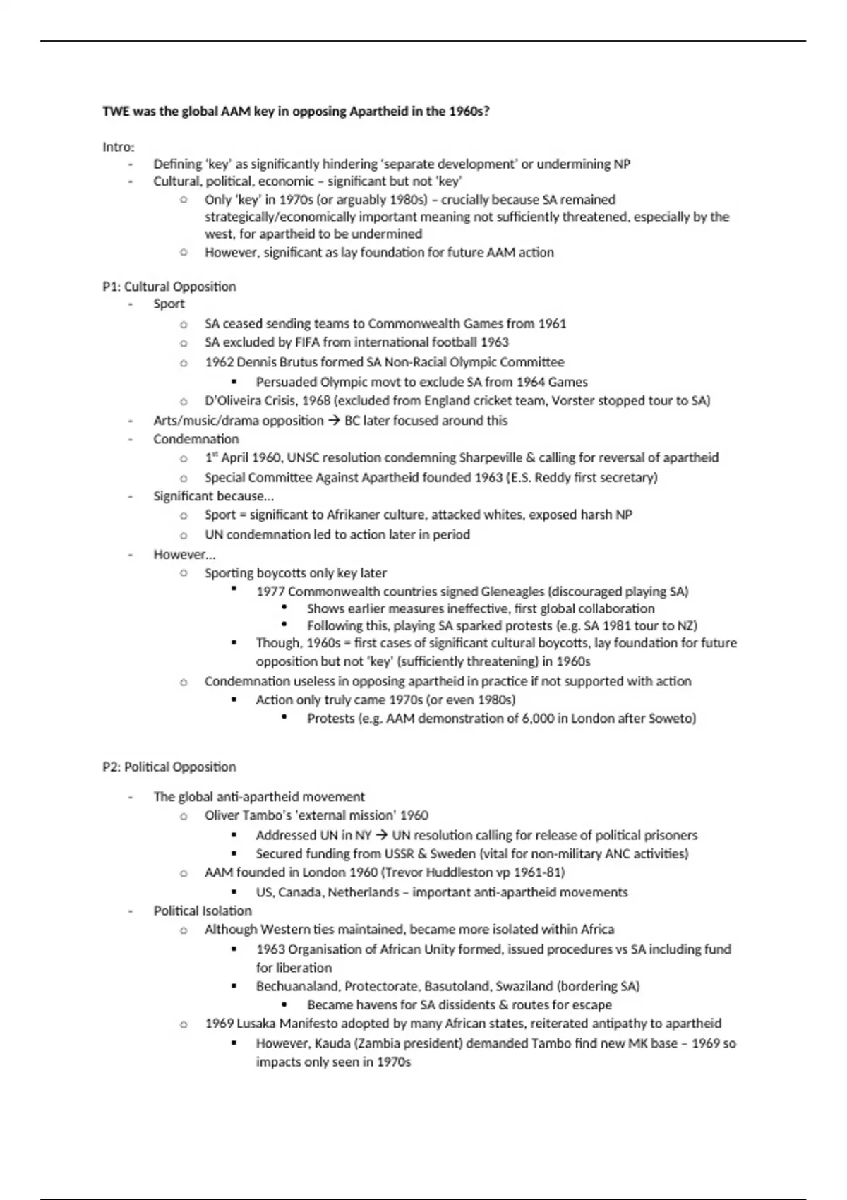 o Sport = significant to Afrikaner culture, attacked whites, exposed harsh NP