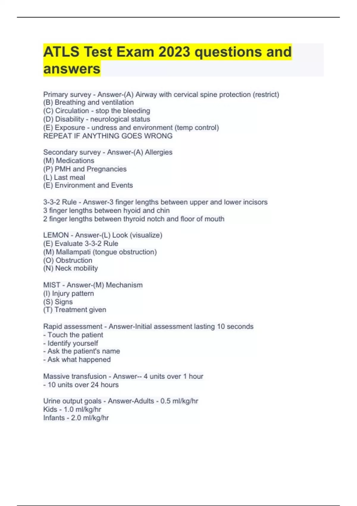 Rapid assessment - Answer-Initial assessment lasting 10 seconds