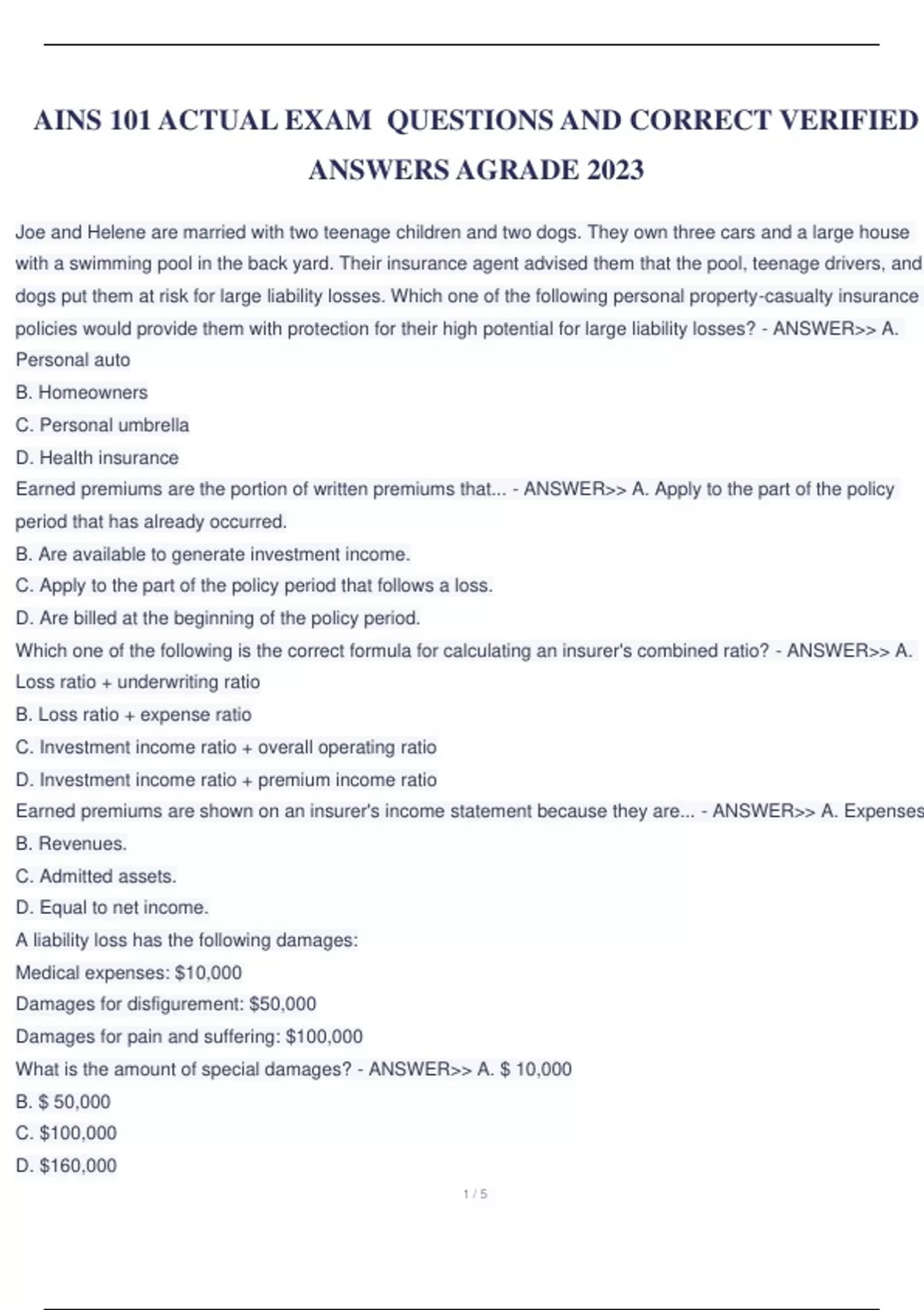 AINS 101 ACTUAL EXAM QUESTIONS AND CORRECT VERIFIED ANSWERS AGRADE 2023