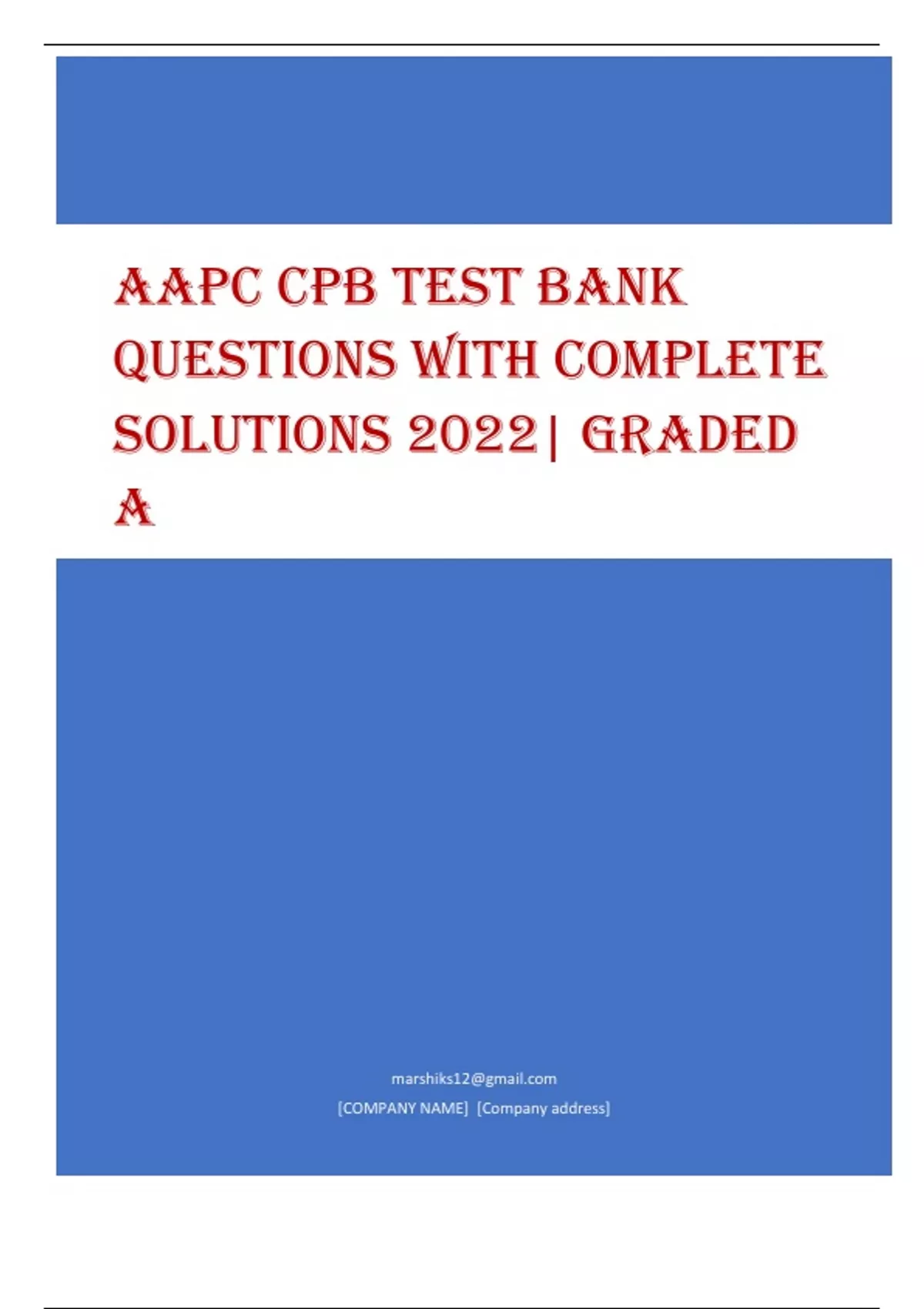 [COMPANY NAME] [Company address] ACCIDENT, LIFE, AND HEALTH INSURANCE QUESTIONS AND ANSWERS 2022 Accident, Life, and Health Insurance questions and answers 2022 Premiums paid by self-employed sole proprietors or partners for medical expense insurance are - answera) Not tax deductible b) Partially tax deductible c) Totally tax deductible d) Taxable c) Totally tax deductible - answerc) What is the purpose of a conditional receipt - answera) It is given by the agent only to applicants who fully prepay all scheduled premiums in advance of policy issue b) It is intended to provide coverage on a date earlier than the date of the issuance of the policy c) It guarantees the applicant that the policy will be issued in the amount applied for in the application d) It serves as proof that the agent has determined the applicant to be fully insurable for coverage by the insurance company b) - answerb) What method is used to determine the taxable portion of each annuity payment? - answera) The excise ratio b) The annuity ratio c) The marginal tax formula d) The exclusion ratio d) - answerd) An insurance producer is also the instructor of a 3-hour ethics course held once a year. To maintain certification, the producer - answera) Must take 24 hours of continuing education courses b) Is not required to take any continuing education courses c) May apply for a continuing education waiver from the Insurance Commissioner d) Must take 18 hours of continuing education courses d) - answerd) What is the tax consequence of amounts received from a Traditional IRA after the money was left in the tax-deferred accounts by the beneficiary? - answera) Capital gains tax on distributions and no penalty b) Capital gains tax on distributions plus 10% penalty c) Income tax on distributions and no penalty d) Income tax on distributions plus 10% penalty c) - answerc) Which of the following is true regarding health insurance underwriting for a person with HIV? - answera) The person may not be declined for medical coverage solely based on HIV status b) A person may be declined for HIV but not AIDS c) The person may be declined d) The person may only be declined if he/she has symptoms a) - answera) Guarantee of insurability option in long-term care policies allows the insured to - answera) Replace the existing LTC policy based on the original underwriting b) Secure the policy's non-forfeiture values regardless of the insured's age or health status c) Increase benefit levels without providing proof of insurability d) Add dependents to the plan without providing proof of their insurability c) - answerc) A prospective insured receives a conditional receipt but dies before the policy is issued. The insurer will - answera) Pay the policy proceeds up to an established limit b) Not pay the policy proceeds under any circumstances c) Automatically pay the policy proceeds d) Pay the policy proceeds only if it would have issued the policy d) - answerd) What provision can reduce the disability benefit based upon the insureds current income? - answera) Pro rata provision b) Rehabilitation benefit c) Relation of earnings to insurance d) Waiver of monthly premium c) - answerc) An applicant is considered to be high-risk but not so much that the insurer wants to deny coverage. Which of the following is NOT true? - answera) The insurer will issue conditional coverage b) The insurer can increase the premium c) The insurer can add exclusions to the policy d) The insurer can rate-up the policy a) - answera) As it pertains to group health insurance, COBRA stipulates that - answera) Retiring employees must be allowed to convert their group coverage to individual policies b) Terminated employees must be allowed to convert their group coverage to individual policies c) Group coverage must be extended for terminated employees up to a certain period of time at the employers expense d) Group coverage must be extended for terminated employees up to a certain period of time at the former employees expense d) - answerd) In comparison to consumer reports, which of the following describes a unique characteristic of investigative consumer reports? - answera) The customer has no knowledge of this action b) The customer's associates, friends, and neighbors provide the reports data c) They provide additional information from an outside source about a particular risk d) They provide information about a customer's character and reputation b) - answerb) Premium payments for personally-owned disability income policies are - answera) Not tax deductible b) Eligible for tax credits c) Tax deductible d) Tax deductible to the extent that they exceed 10% of the adjusted gross income of those itemizing deductions a) - answera) What is the advantage of having a qualified annuity? - answera) Receiving a lump-sum settlement tax free b) Higher dividends c) Favorable tax treatment d) No filling with the IRS c) - answerc) If an insurance company makes a statement that its policies are guaranteed by the existence of the Insurance Guaranty Association - answera) A misrepresentation b) An accurate statement c) A legal representation of the Association d) An unfair trade practice d) - answerd) The Federal Fair Credit Reporting Act - answera) Prevents money laundering b) Regulates consumer reports c) Protects customer privacy d) Regulates telemarketing b) - answerb) An insured has medical insurance coverage through 2 different providers, both covering the same expenses on an expense-incurred basis. Neither company knows in advance that the insured has coverage through any other insurers. The insured submits a claim to both insurers. How should the claim be handled? - answera) Each insurer should pay a proportionate amount of the claim b) One of the insurers will pay fully, while the other will not pay any benefits c) Once the insurers discover the duplicate coverage, the policies would most likely be cancelled, and no claim paid. d) The insured should receive full benefits from each insu