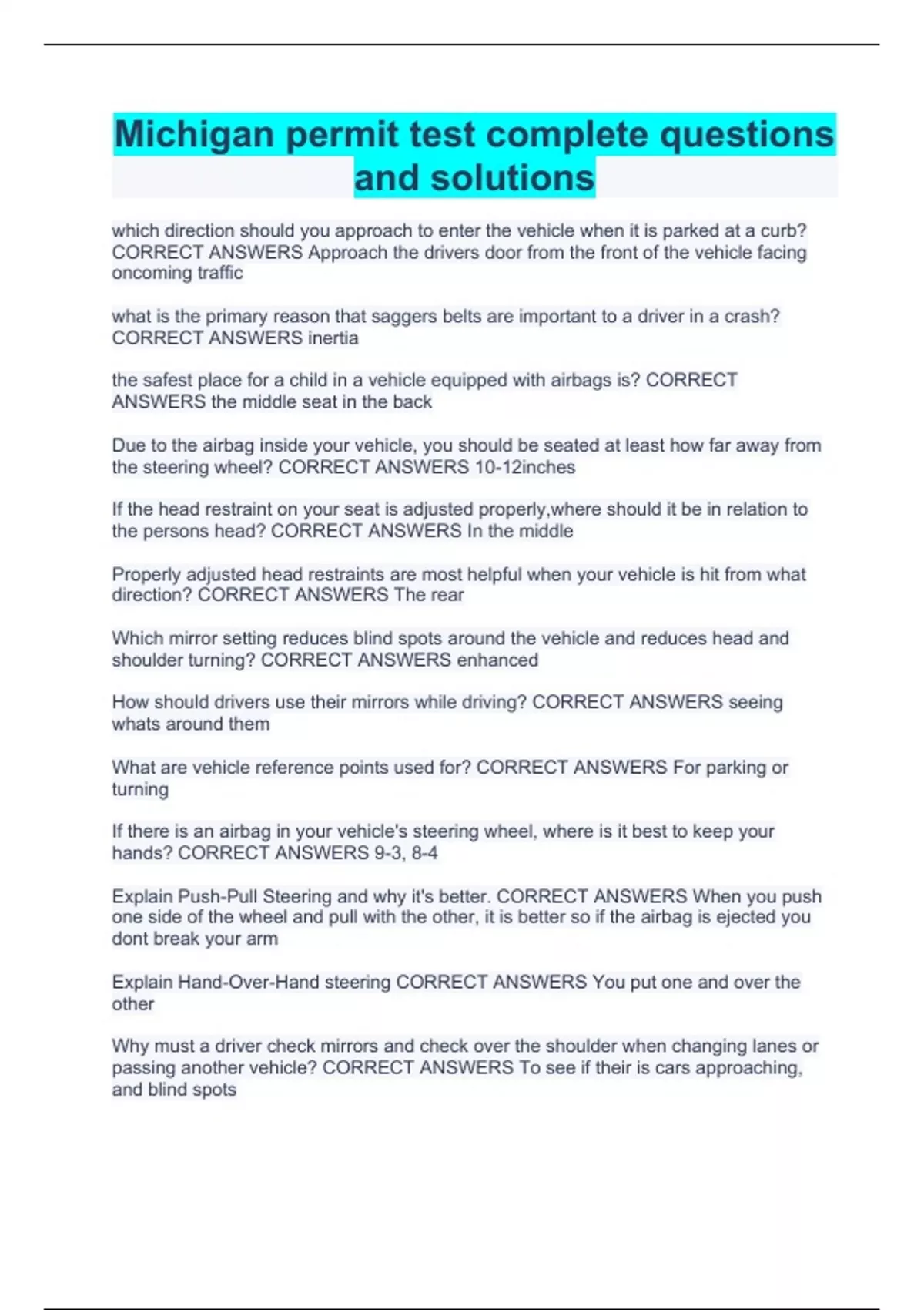 michigan permit test complete questions and soluti