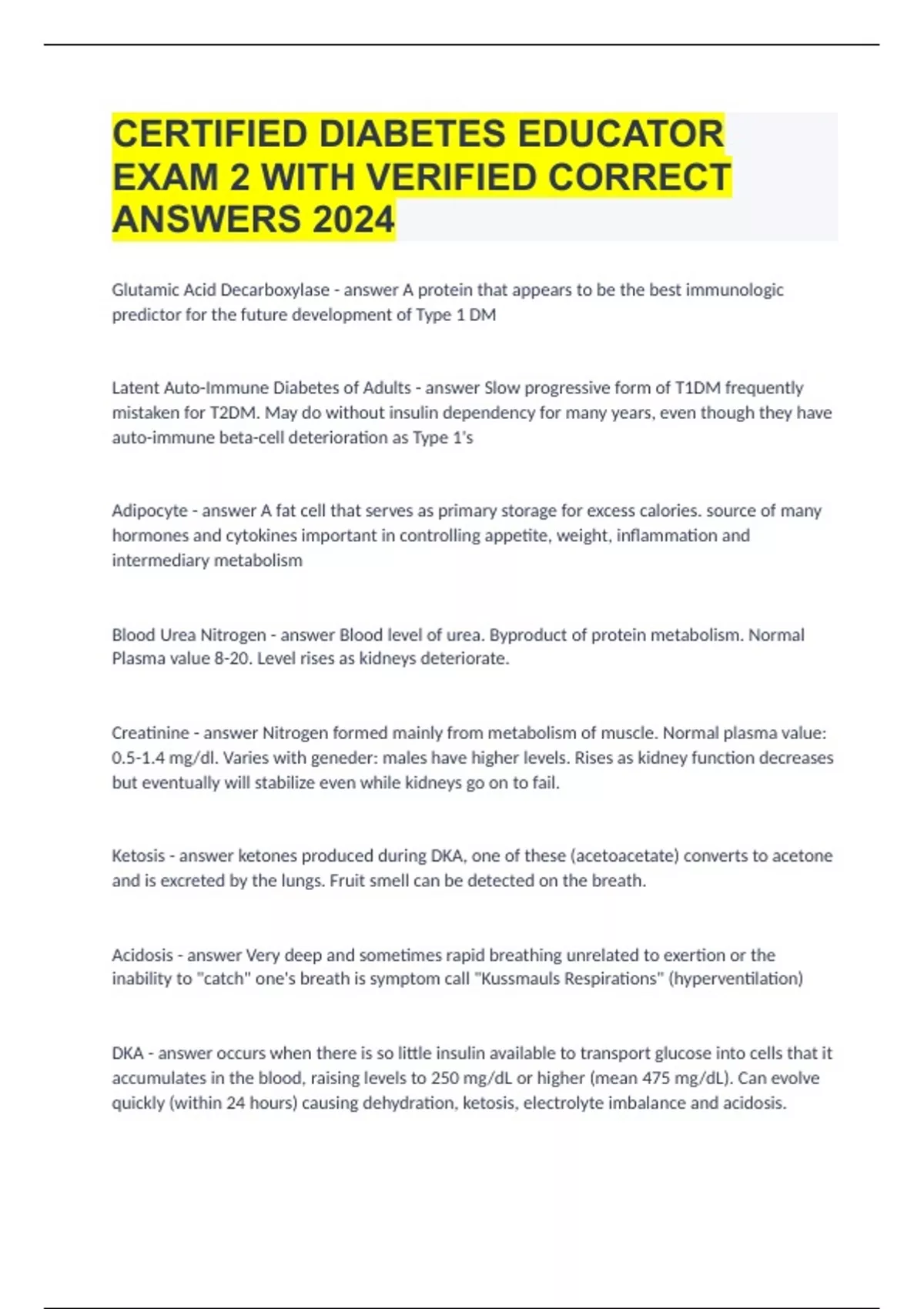 CERTIFIED DIABETES EDUCATOR EXAM 2 WITH VERIFIED CORRECT ANSWERS 2024