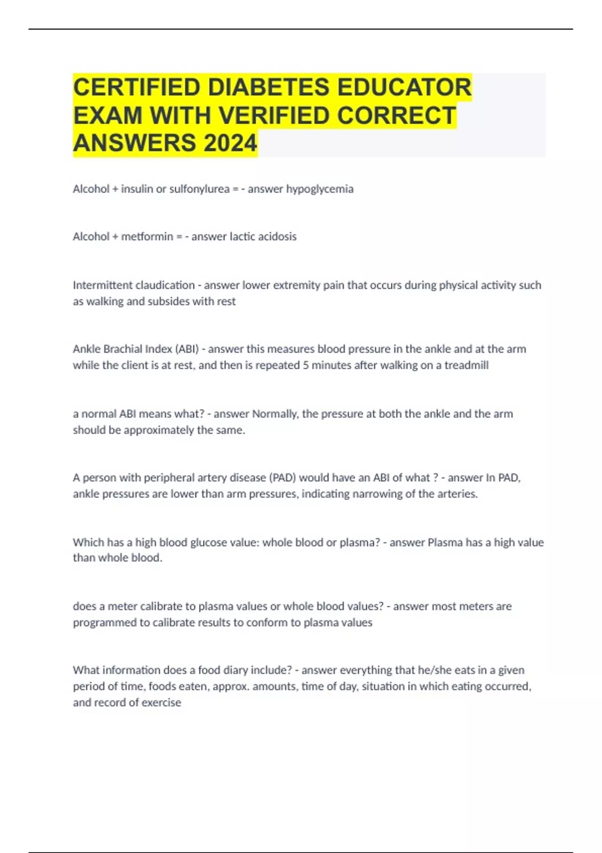 CERTIFIED DIABETES EDUCATOR EXAM WITH VERIFIED CORRECT ANSWERS 2024.