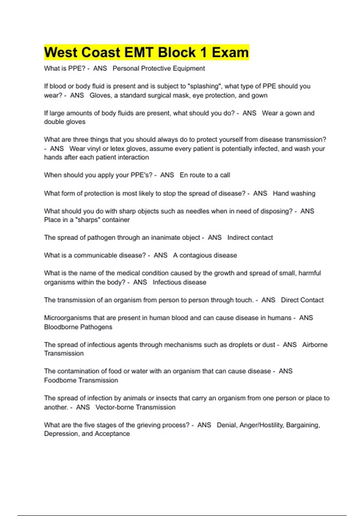- West Coast EMT Block 1