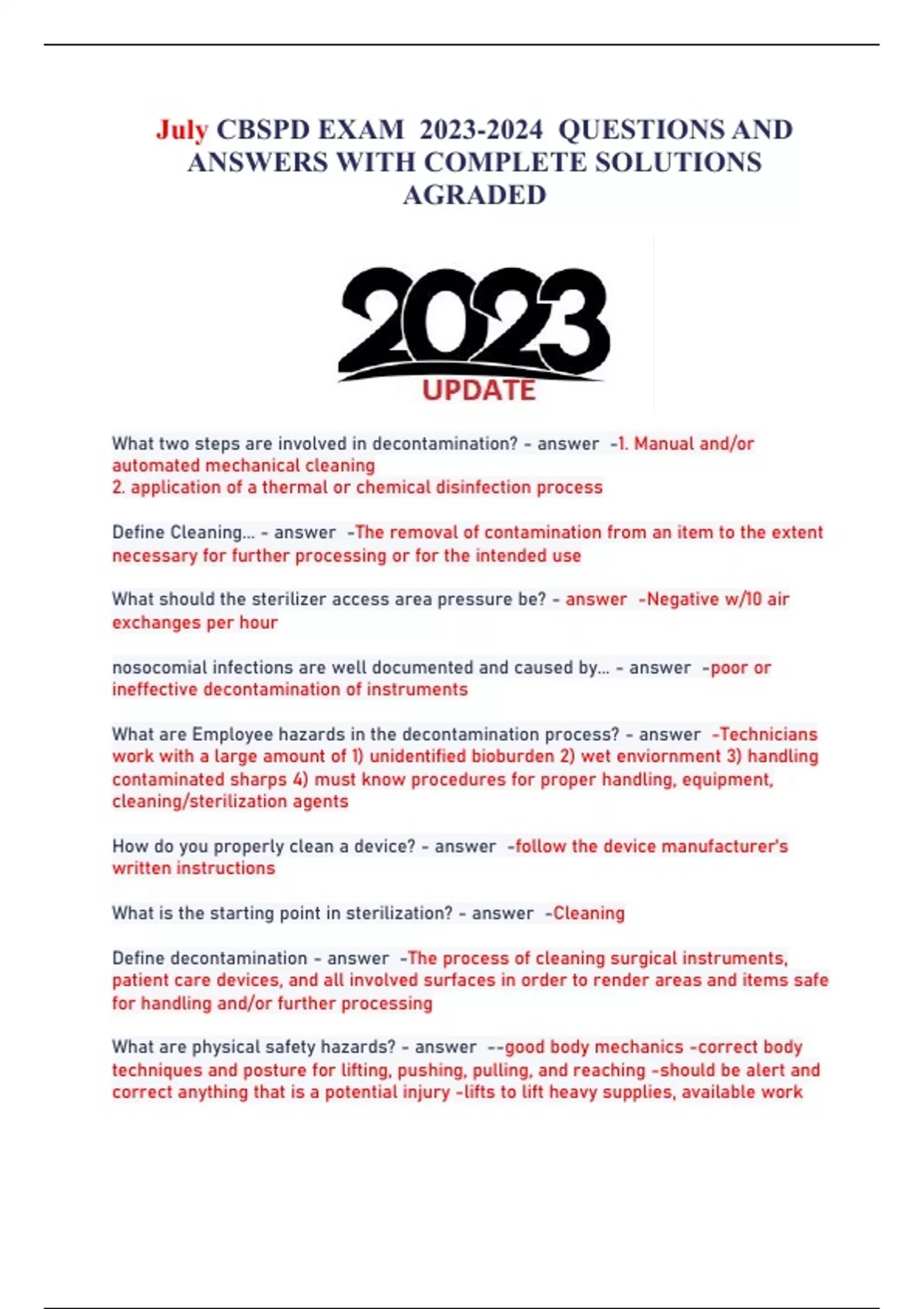 July CBSPD EXAM QUESTIONS AND ANSWERS WITH COMPLETE SOLUTIONS AGRADED