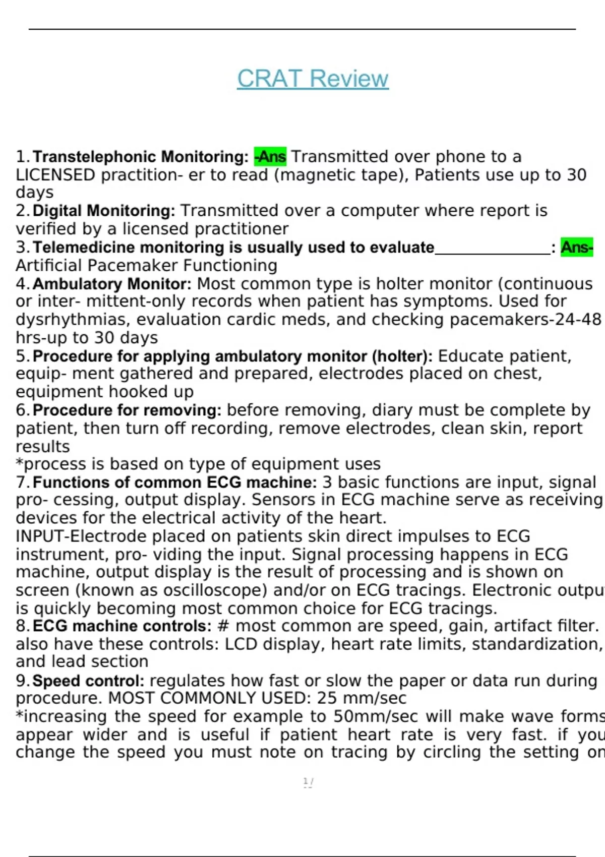 CRAT Review Questions and Answers | VERIFIED ANSWERS