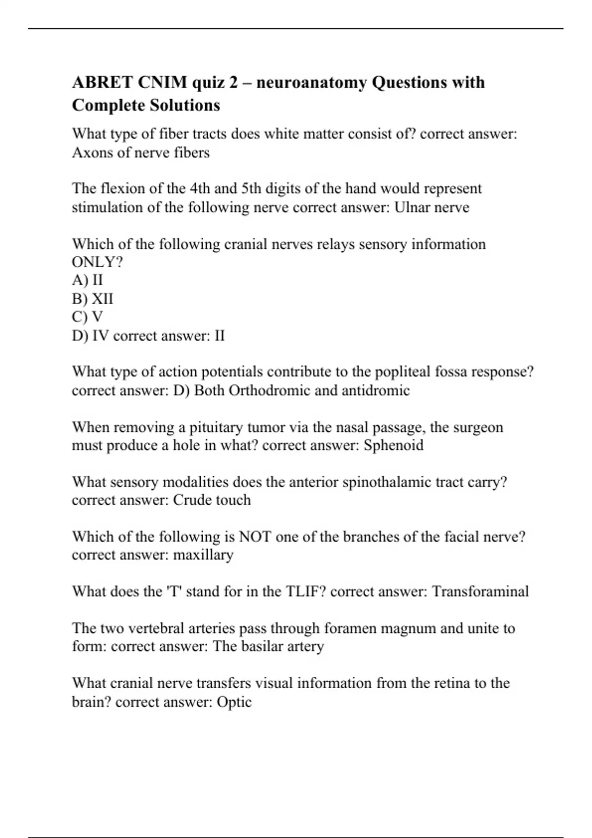 ABRET CNIM quiz 2 Questions With Complete Solutions