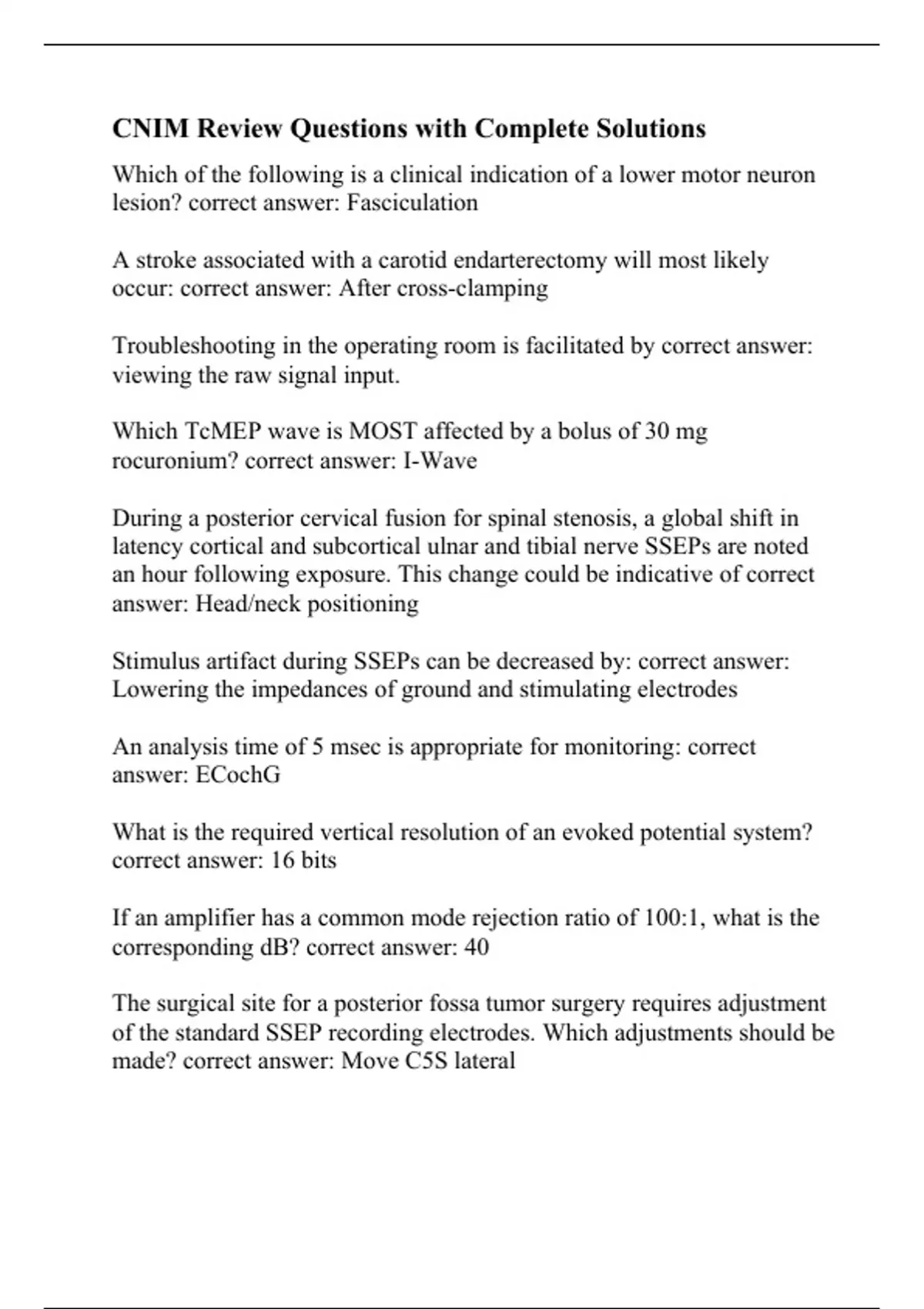 cnim review questions with complete solutions