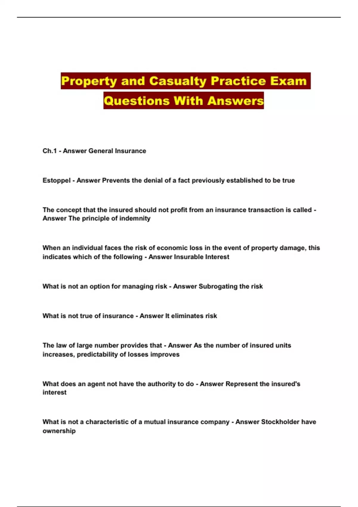 Property and Casualty Practice Exam Questions With Answers...