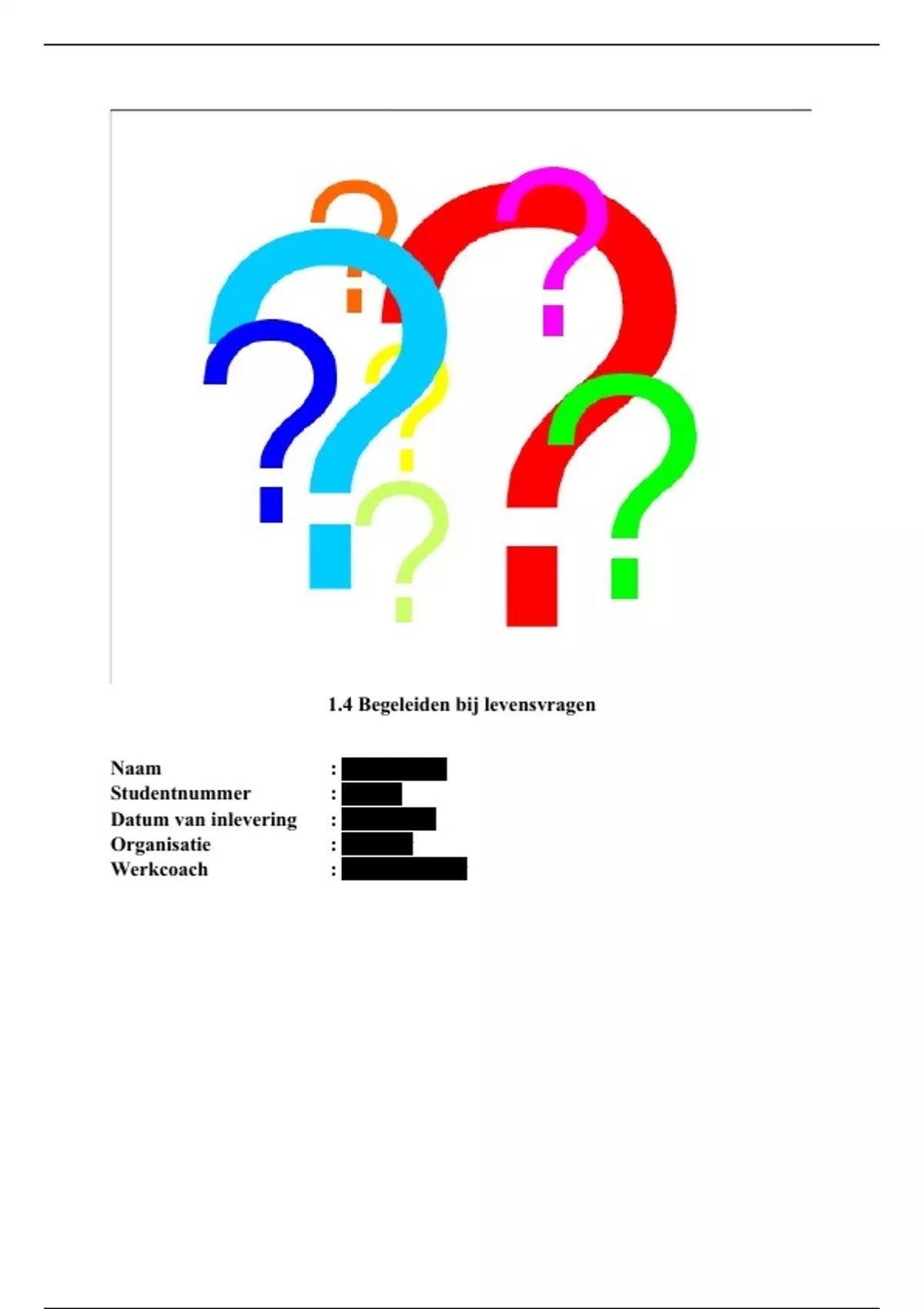 Toets verslag 1.4 Begeleiden bij levensvragen HBO Social Work