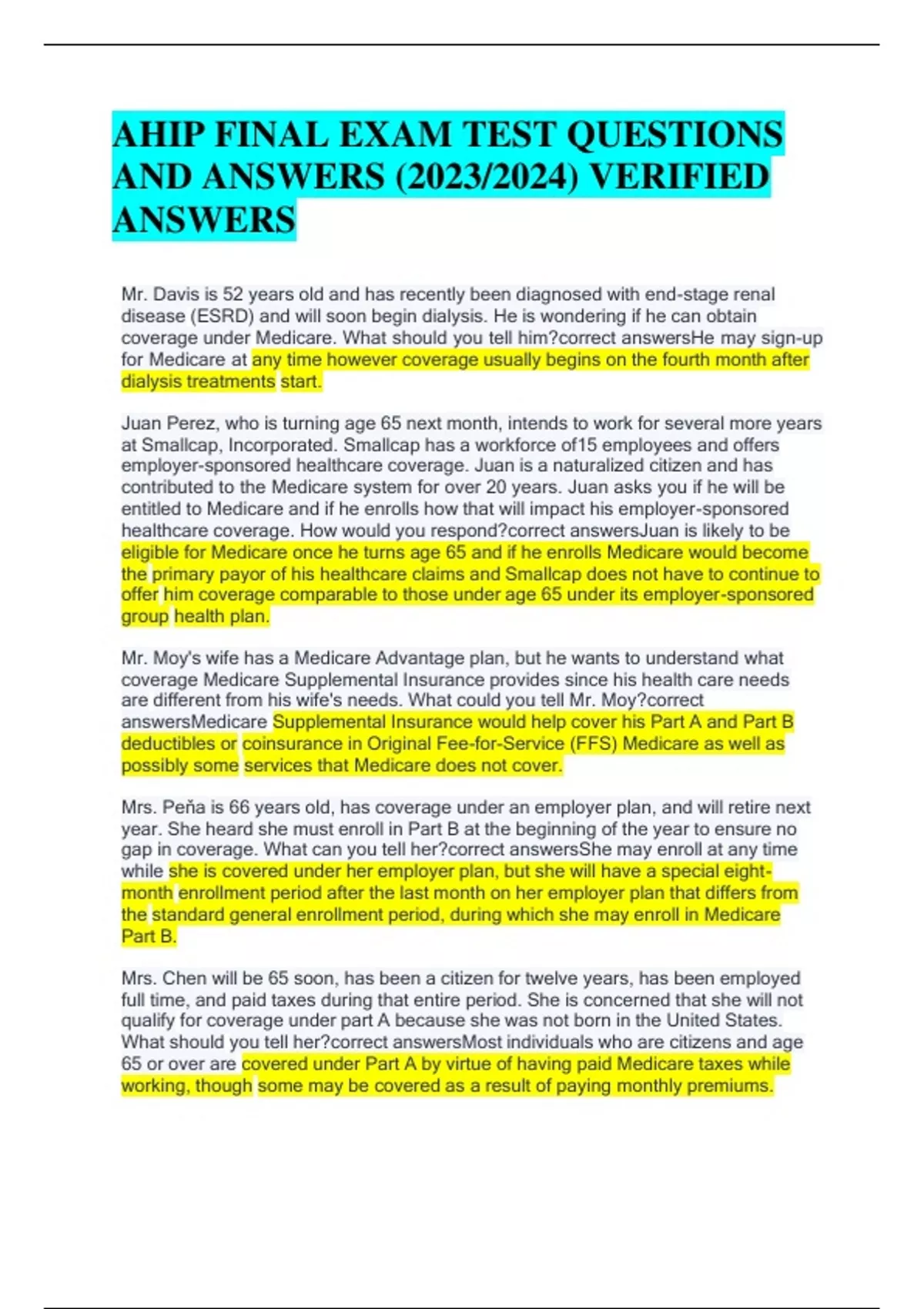 AHIP FINAL EXAM TEST QUESTIONS AND ANSWERS (2023/2024) VERIFIED ANSWERS
