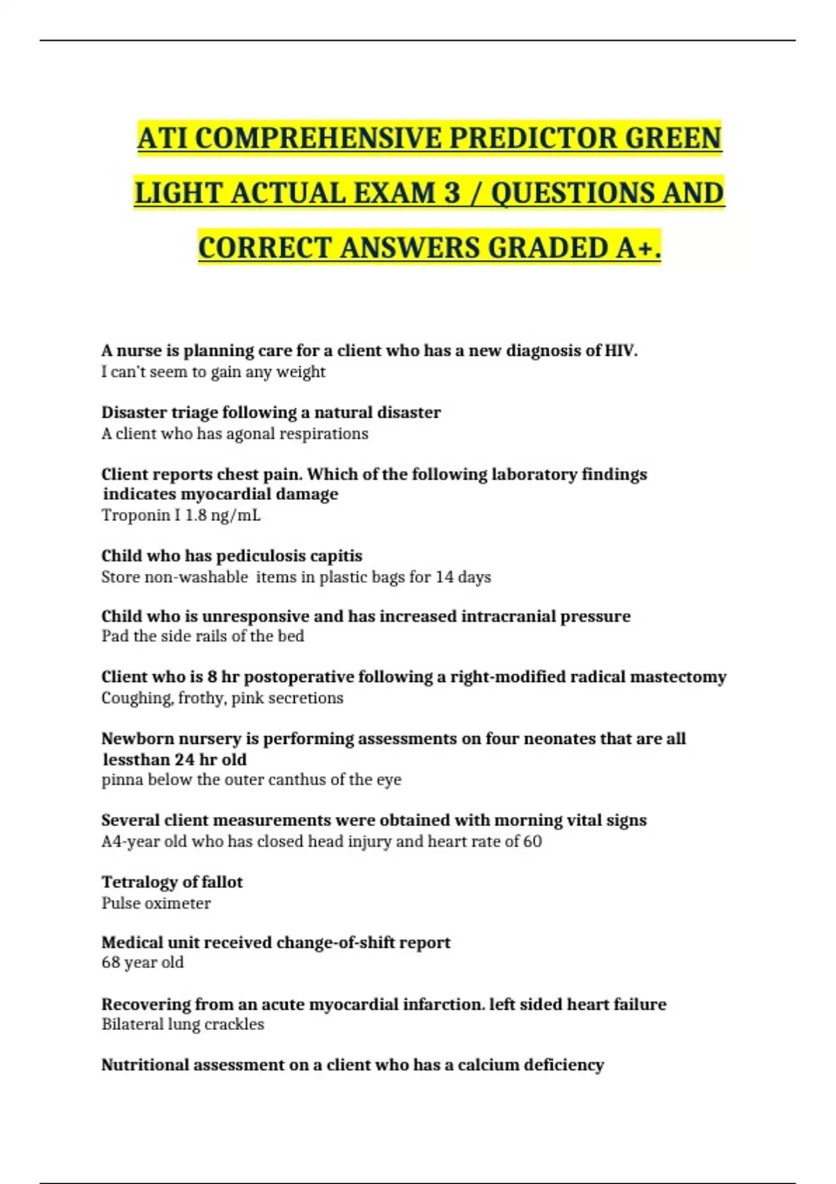 ATI COMPREHENSIVE PREDICTOR GREEN LIGHT ACTUAL EXAM 3 / QUESTIONS AND CORRECT ANSWERS GRADED A+.