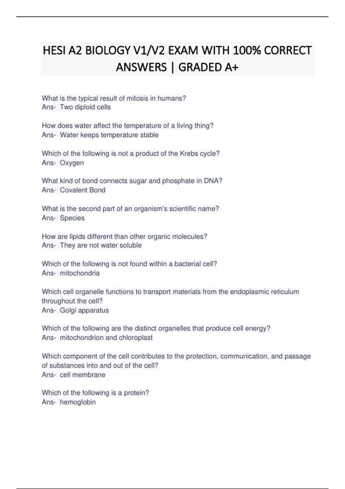 HESI A2 BIOLOGY V1/V2 EXAM WITH 100% CORRECT ANSWERS | GRADED A+