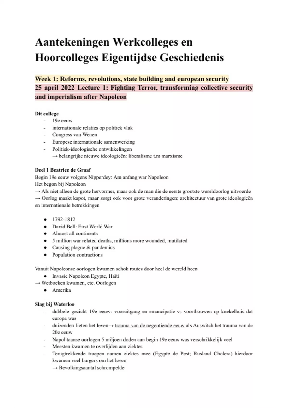 Aantekeningen Hoorcolleges en Werkcolleges Eigentijdse Geschiedenis
