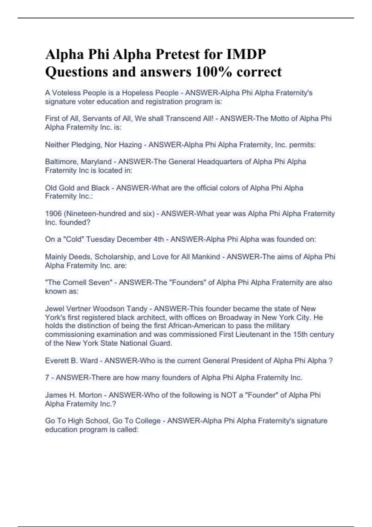 Alpha Phi Alpha Pretest for IMDP Questions and answers 100% correct