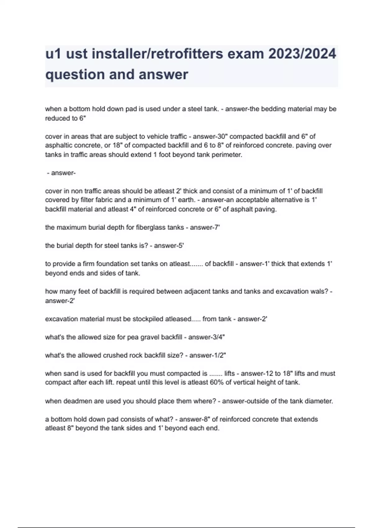 u1 ust installer/retrofitters exam 2023/2024 question and answer