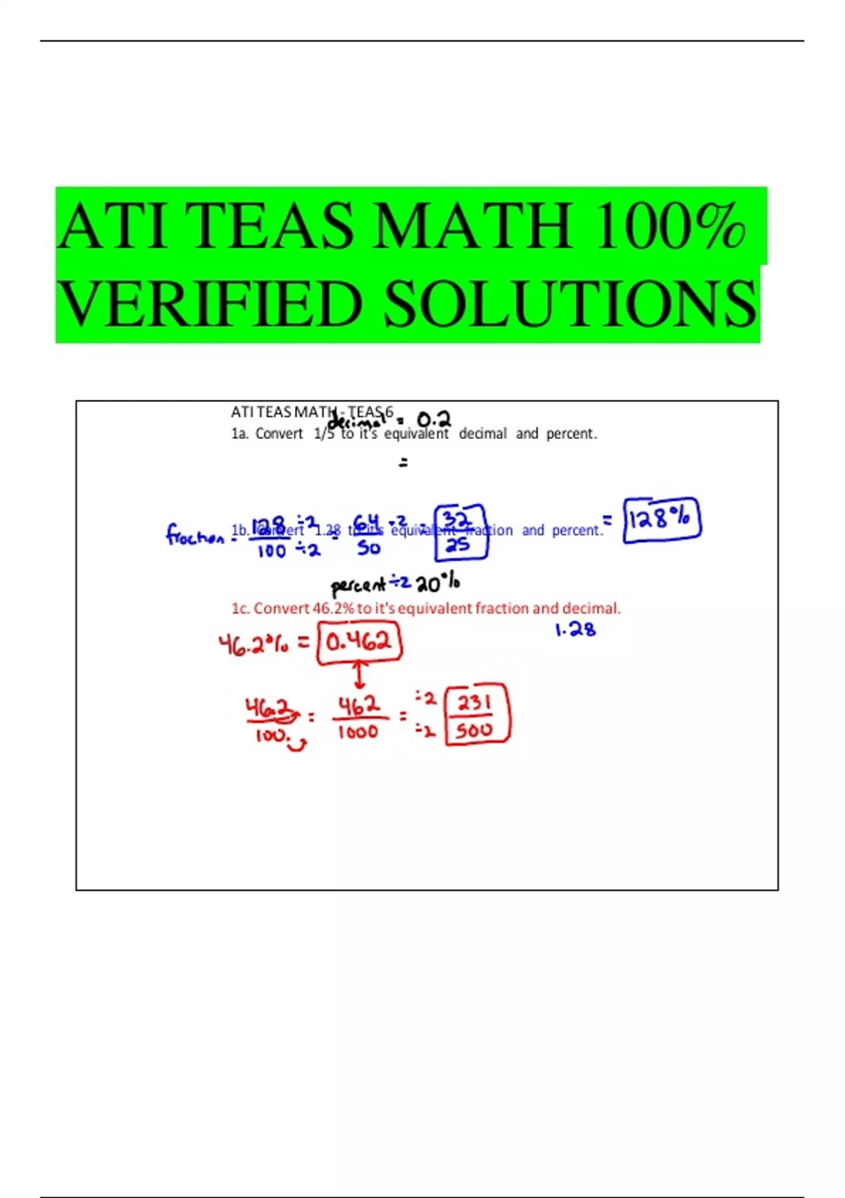 ATI TEAS MATH 100% VERIFIED SOLUTIONS