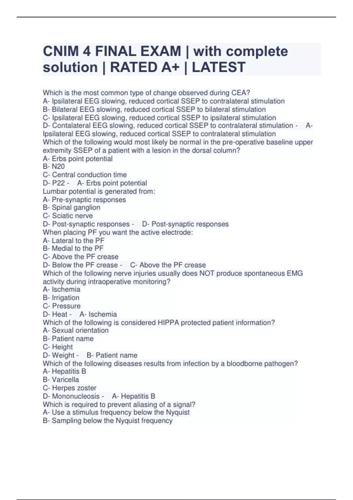 CNIM 4 FINAL EXAM | with complete solution | RATED A+ | LATEST