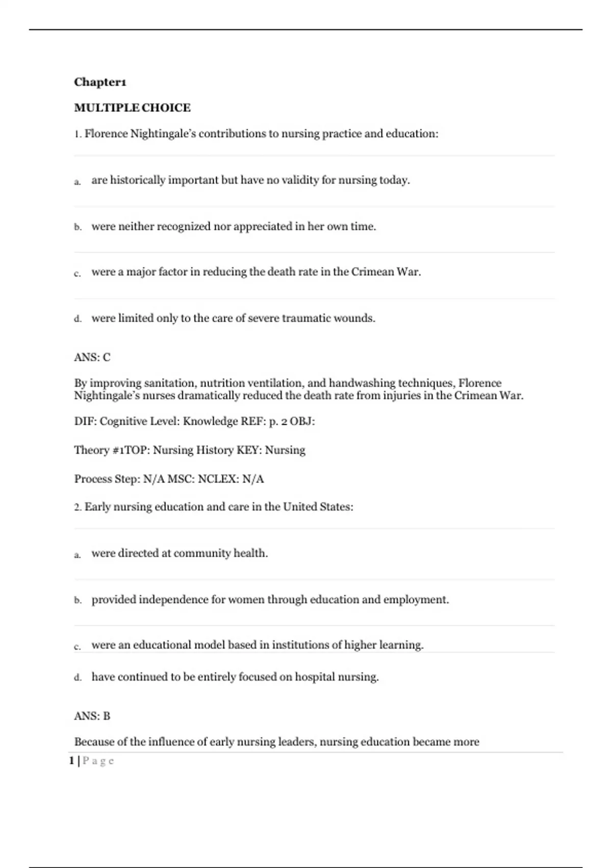1. Florence Nightingale’s contributions to nursing practice and education: