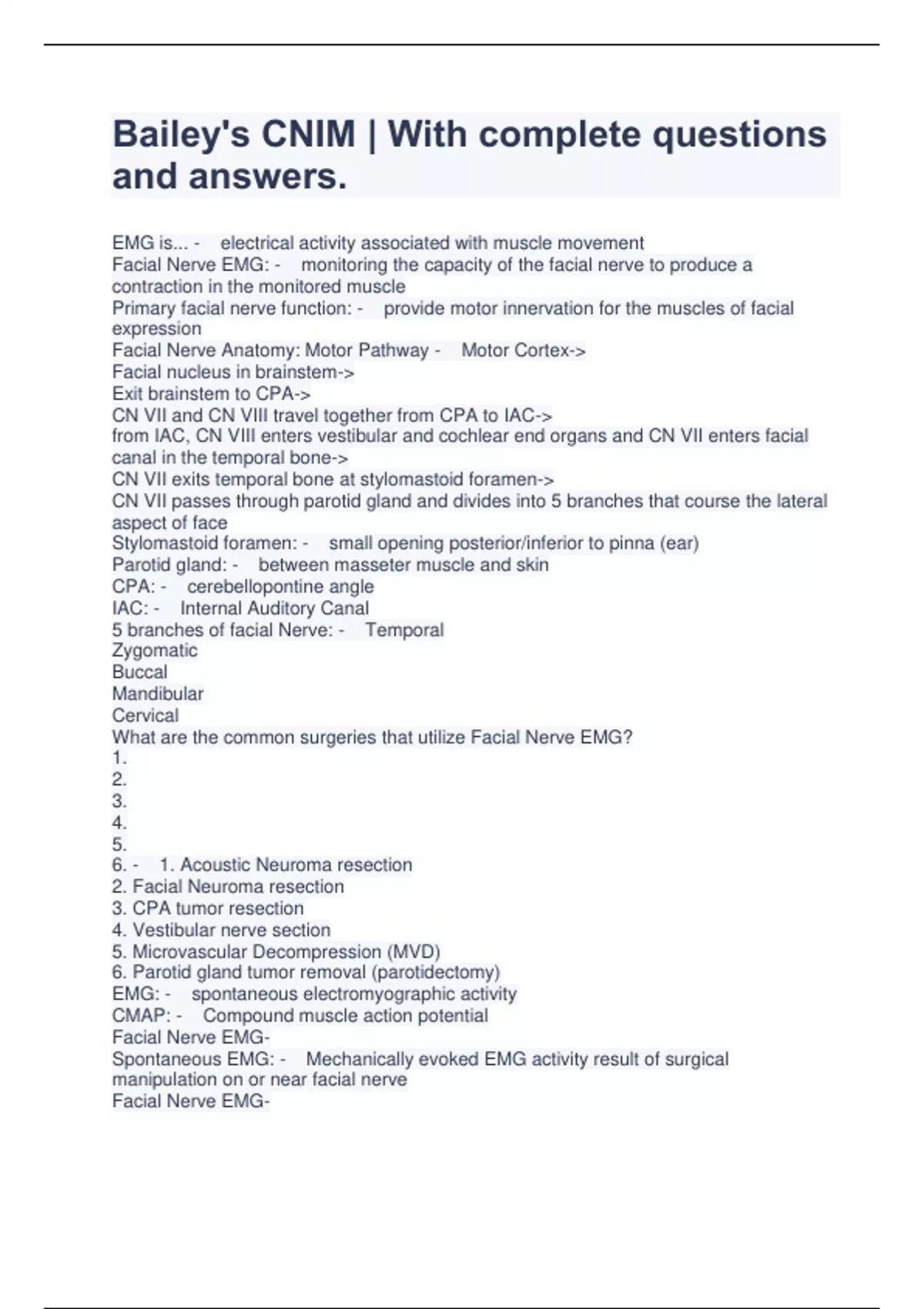Bailey's CNIM | With complete questions and answers