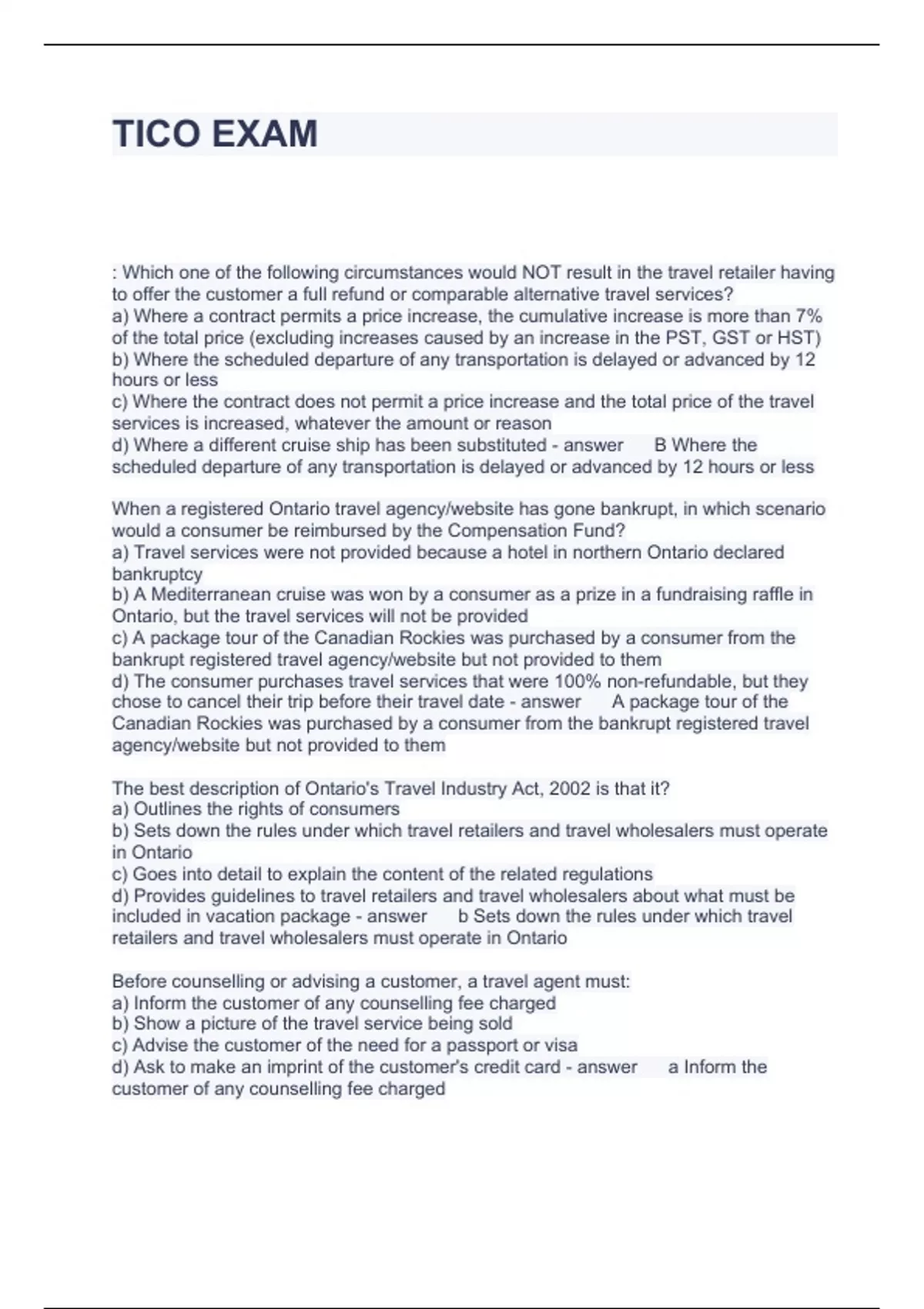 TICO EXAM QUESTIONS AND ANSWERS 100% ACCURATE 2023