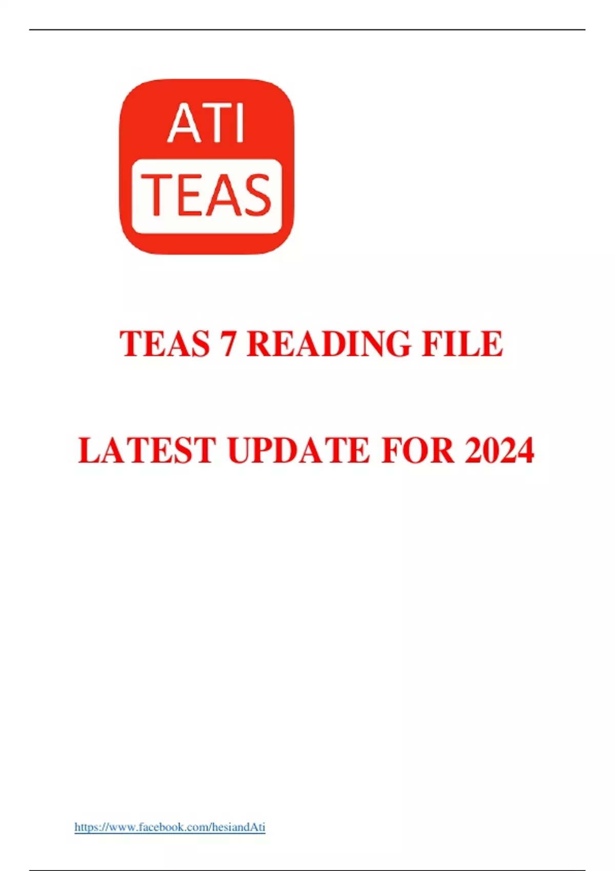 ATI TEAS 7 READING FILE LATEST UPDATE FOR 2024