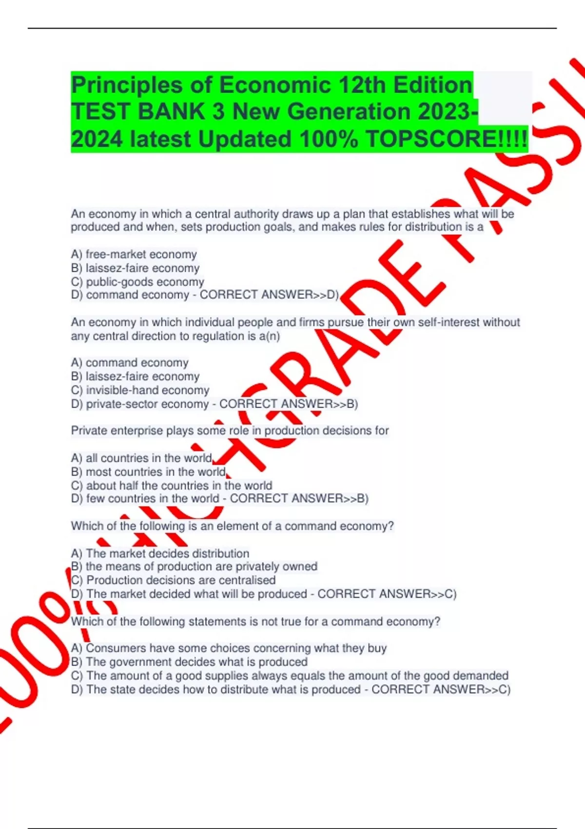 Principles of Economic 12th Edition TEST BANK 3 New Generation latest Updated 100% TOPSCORE!!!!