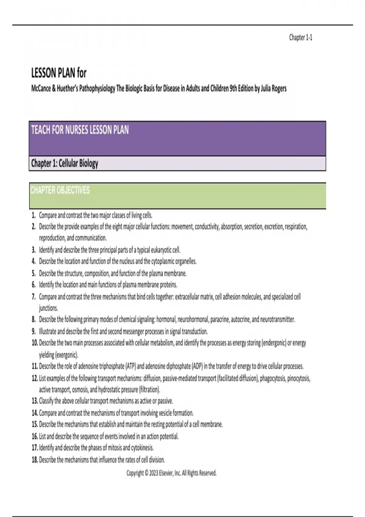 Nursing Lesson Plan McCance & Huether’s Pathophysiology The Biologic Basis for Disease in Adults and Children 9th Edition by Julia Rogers