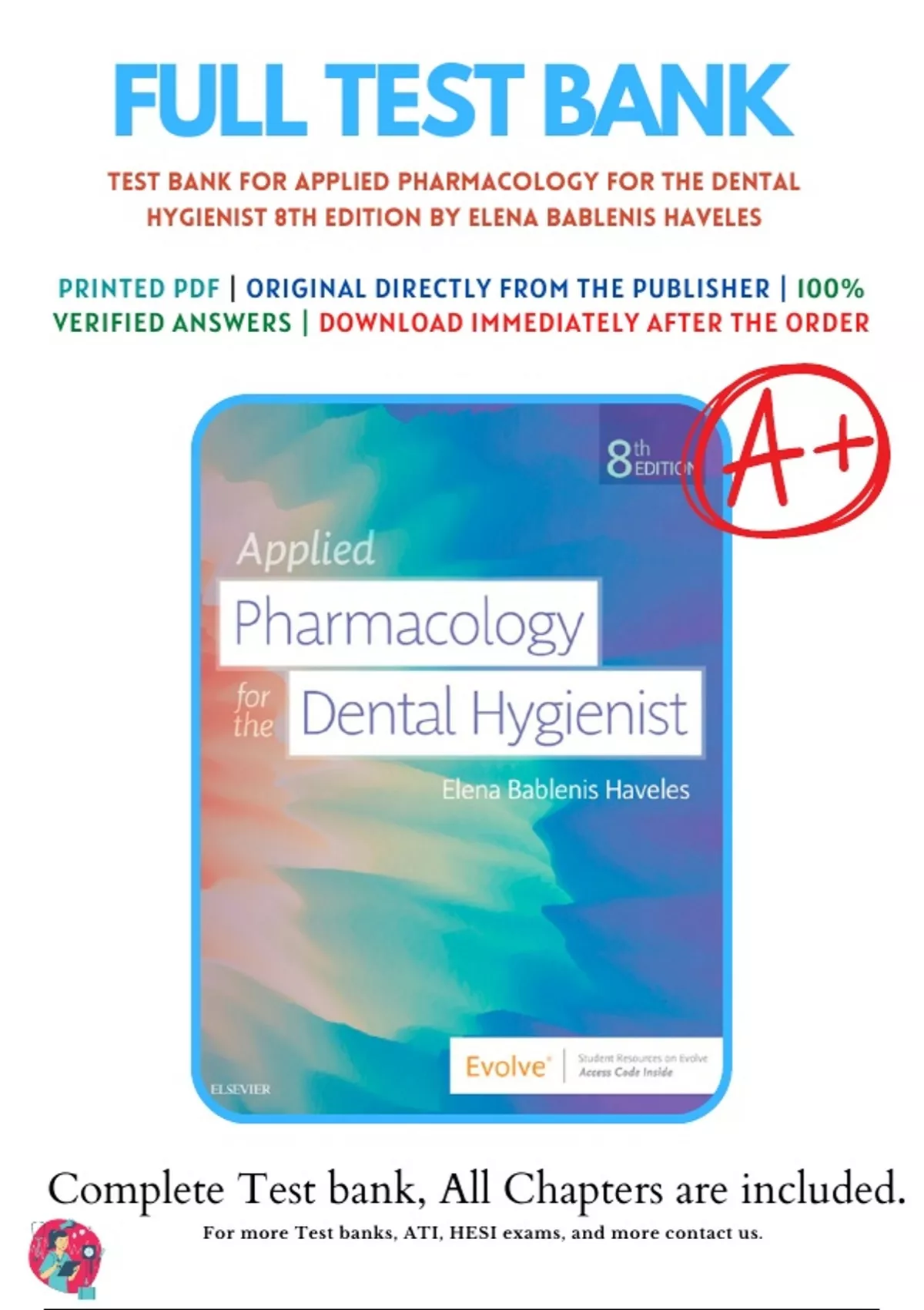 Test bank for Applied Pharmacology for the Dental Hygienist 8th Edition Haveles, 9780323595391, All Chapters with Answers and RationalsTest bank for Applied Pharmacology for the Dental Hygienist 8th Edition Haveles, 9780323595391, All Chapters with Answer