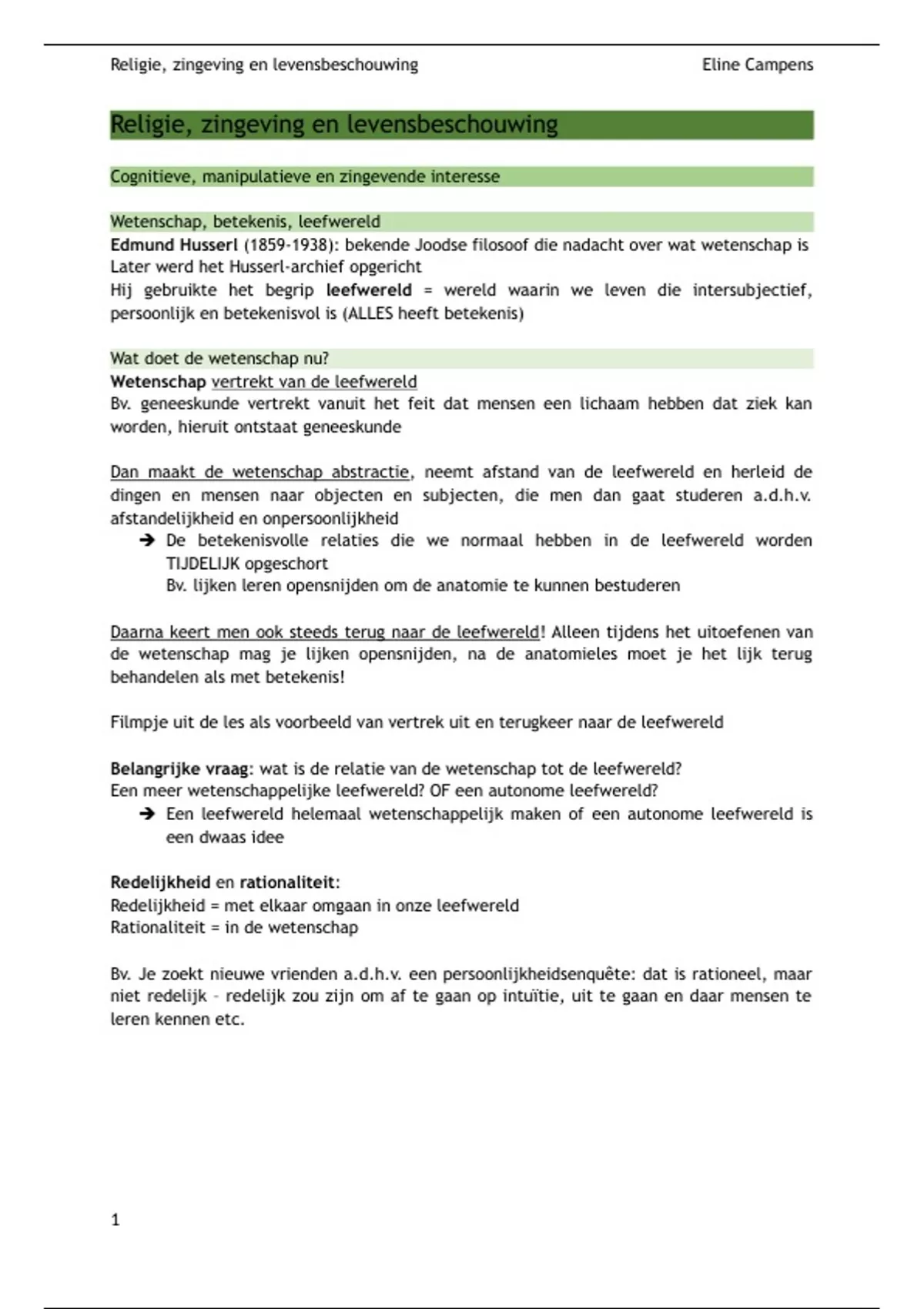 ,Religie, zingeving en levensbeschouwing Eline Campens