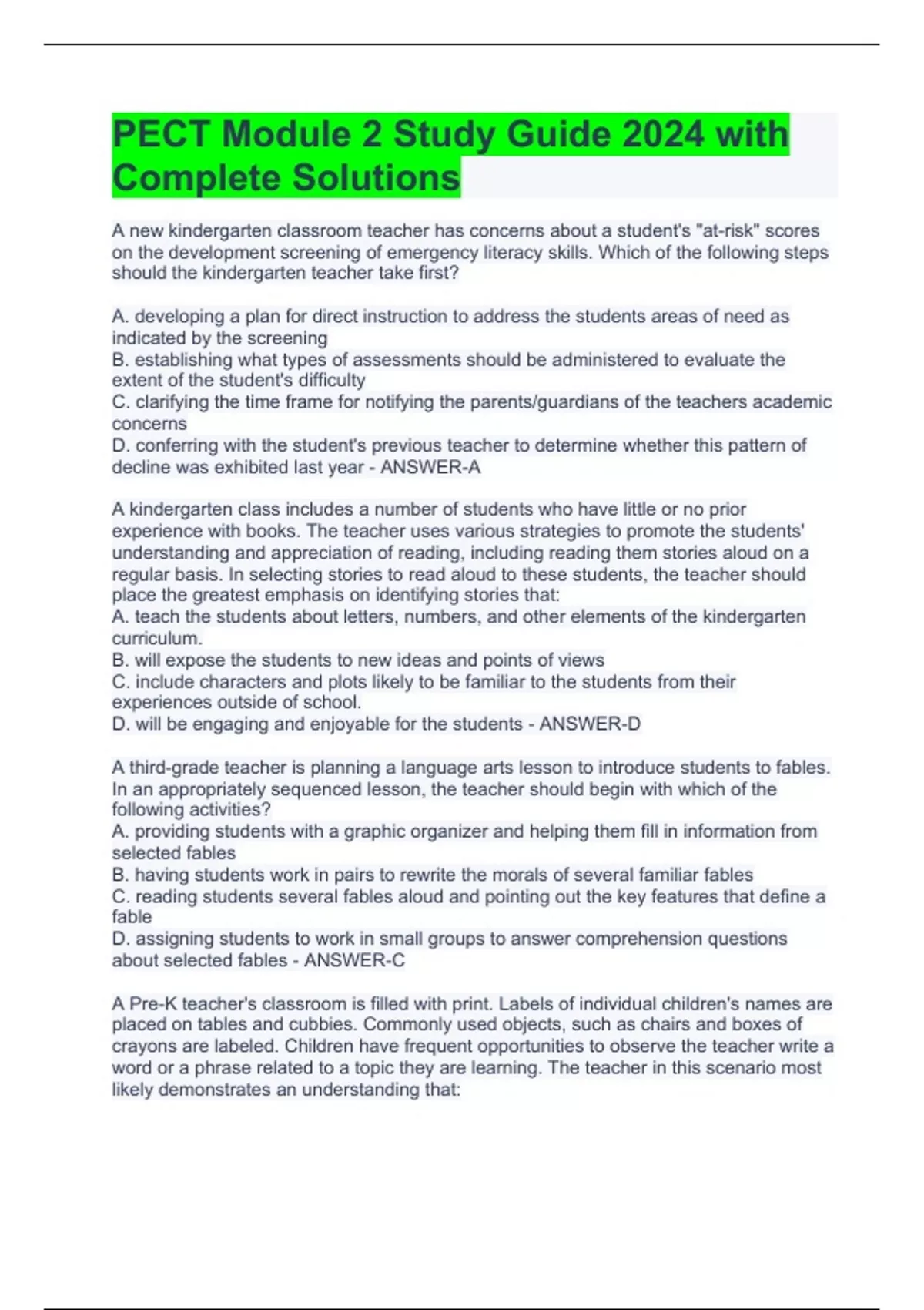 PECT Module 2 Study Guide 2024 with Complete Solutions