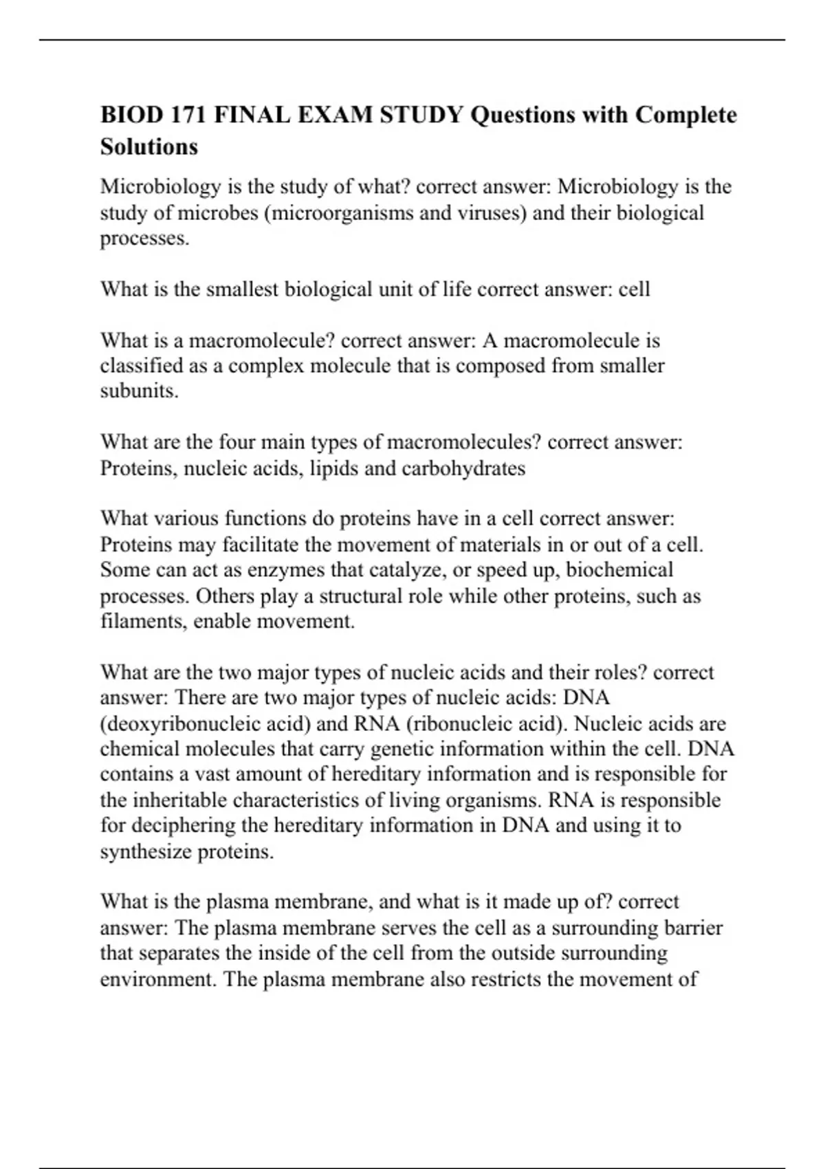 BIOD 171 FINAL EXAM STUDY Questions with Complete Solutions.