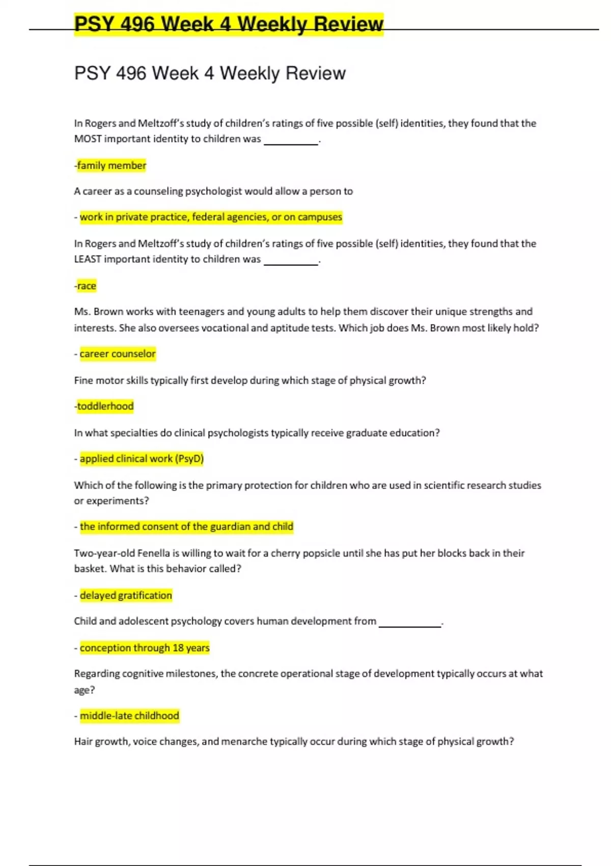 psy 496 week 4 weekly review questions answered