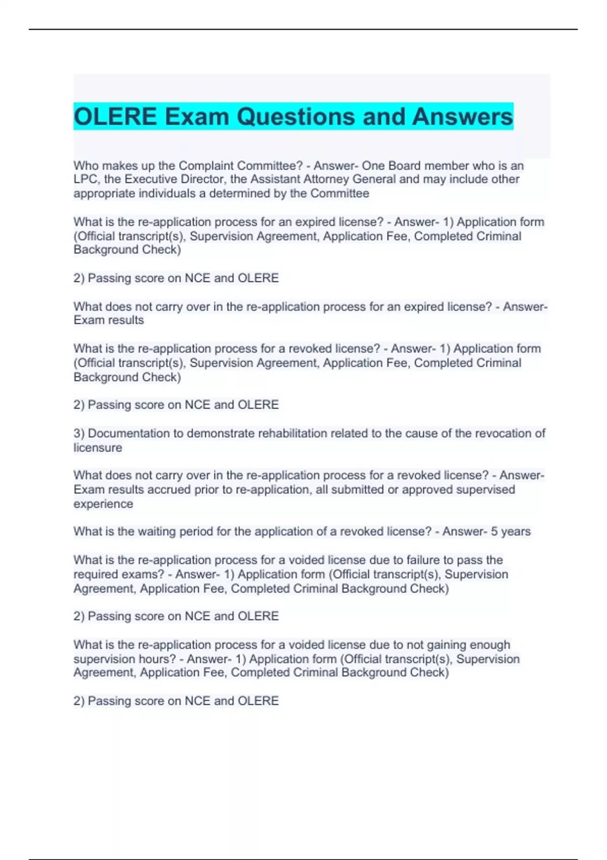 OLERE Exam Bundle (Graded A)