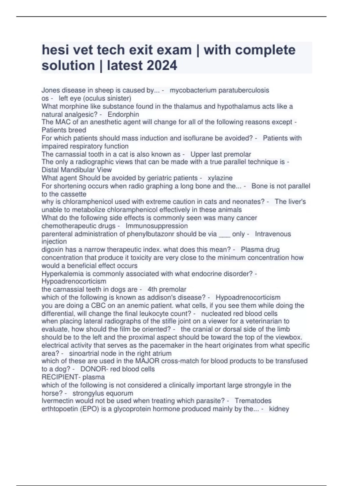 hesi vet tech exit exam | with complete solution | latest 2024