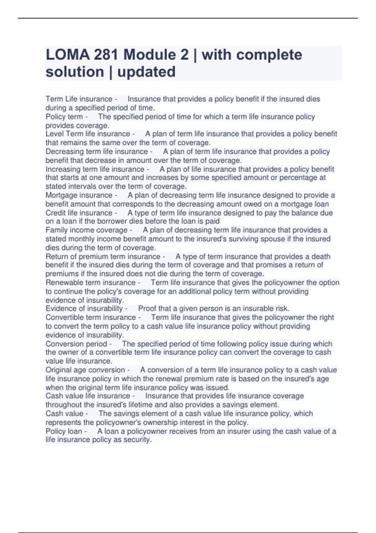 LOMA 281 Module 2 | with complete solution | updated