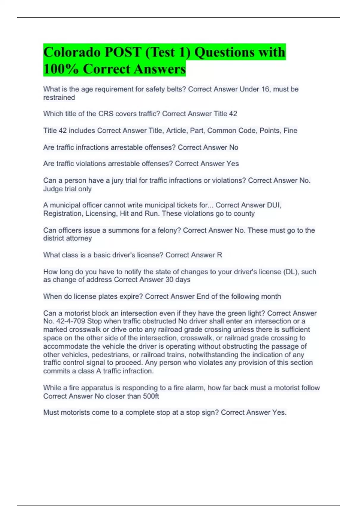 Colorado POST (Test 1) Questions with 100% Correct Answers