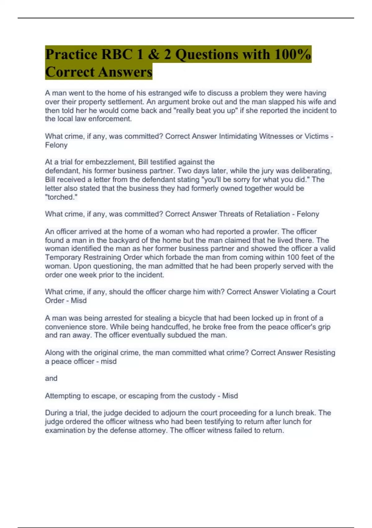 Practice RBC 1 & 2 Questions with 100% Correct Answers
