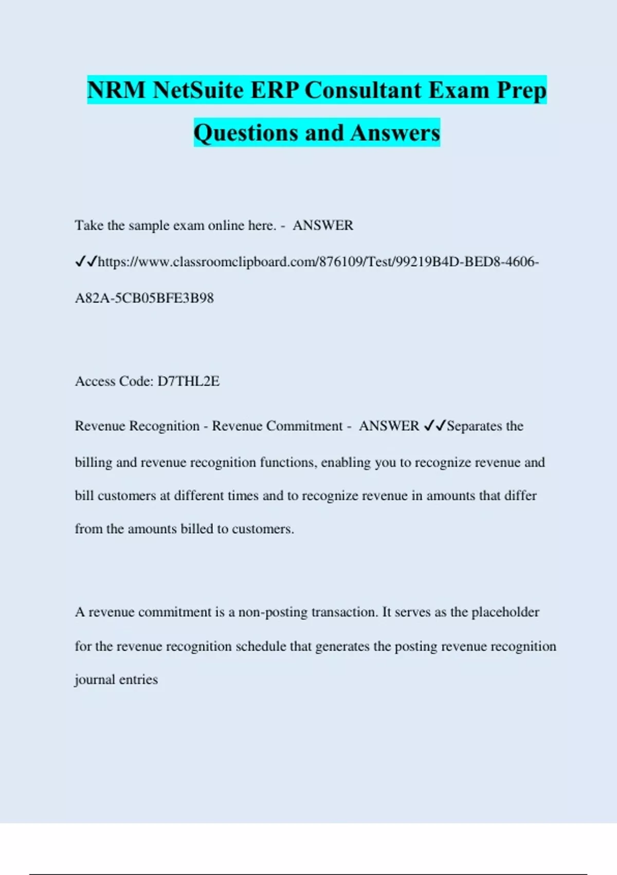 NRM NetSuite ERP Consultant Exam Prep Questions and Answers