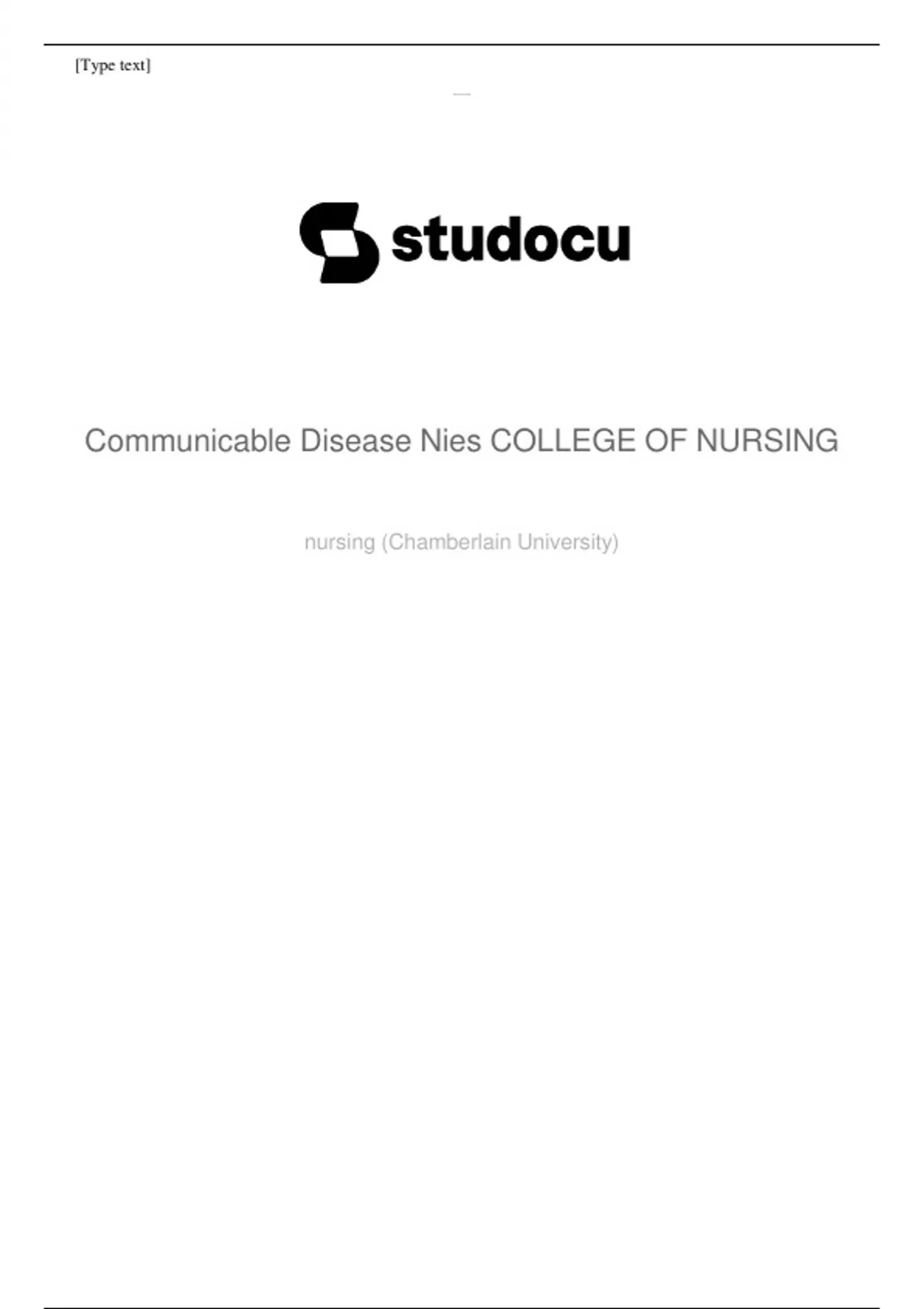- Communicable Disease Nies: Community/Public Health